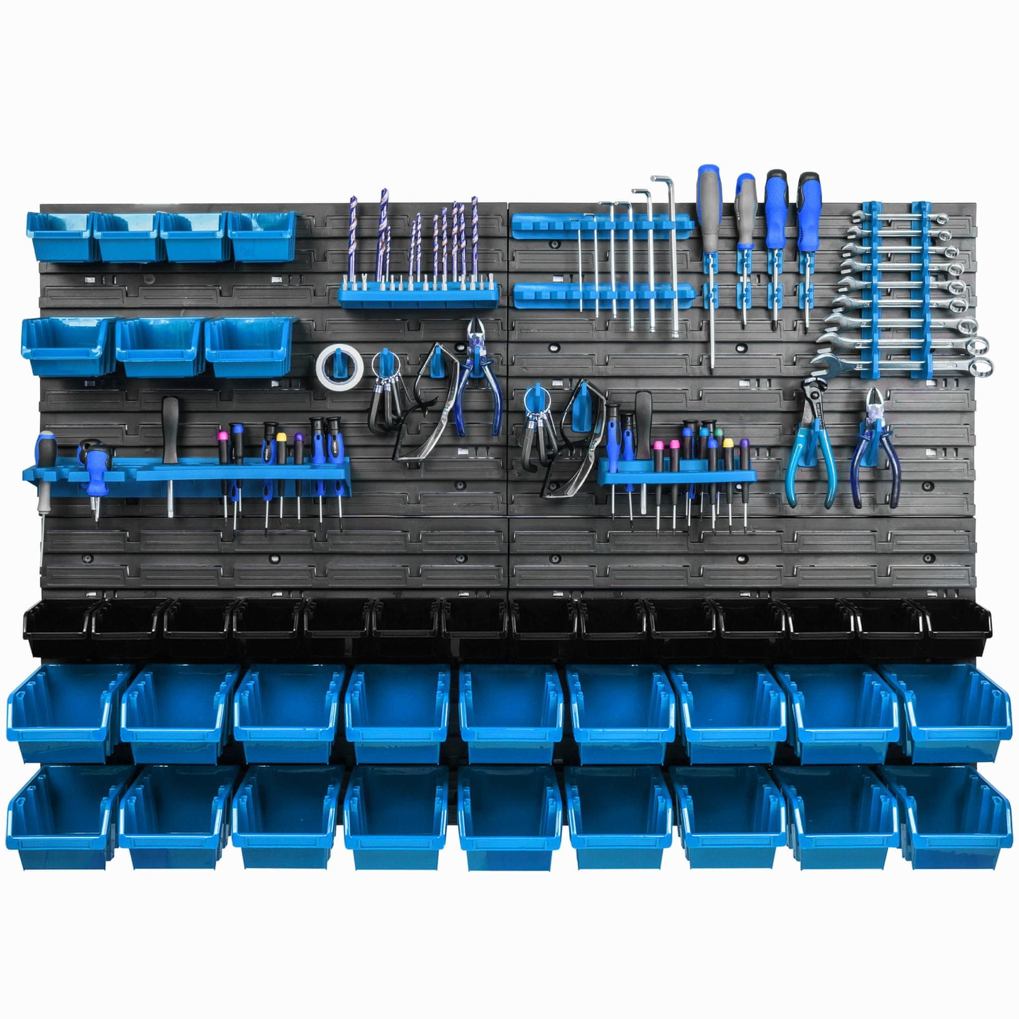 Viseča plošča za orodje 115 × 78 cm z 39 kos Škatla stenskih Modra in Črna Držala Delavnica Garaža