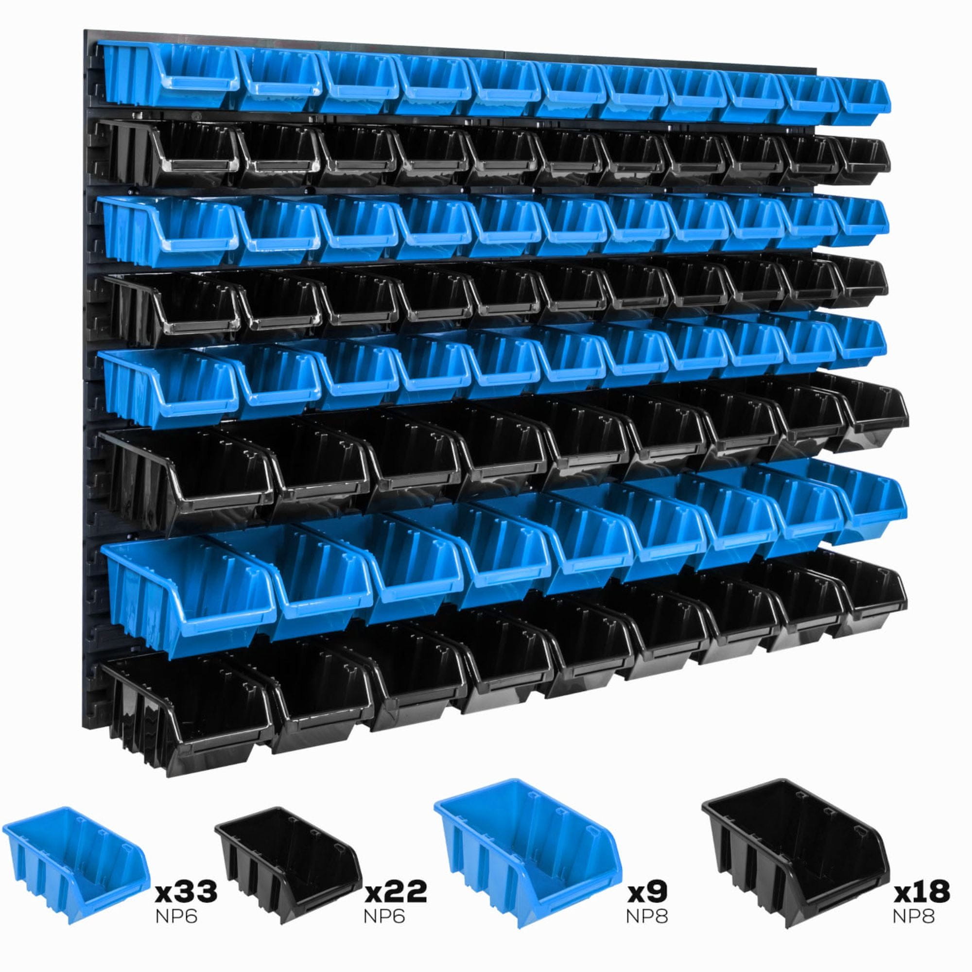 botle Viseča plošča za orodje 115 x 78 cm z 82 kos Škatla stenskih Modra in Črna Sistem za shranjevanje