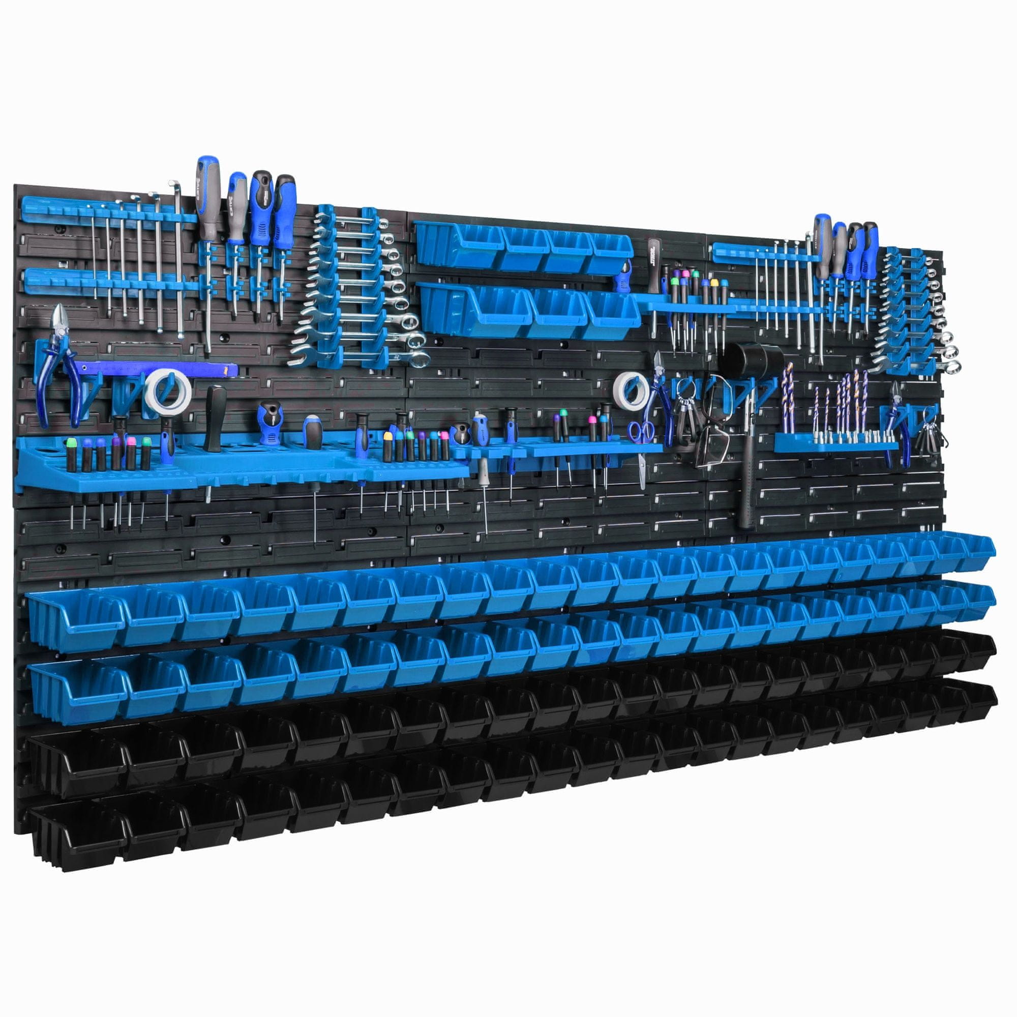 botle Viseča plošča za orodje 173 x 78 cm z 95 kos Škatla stenskih Modra in Črna škatle plastika XL
