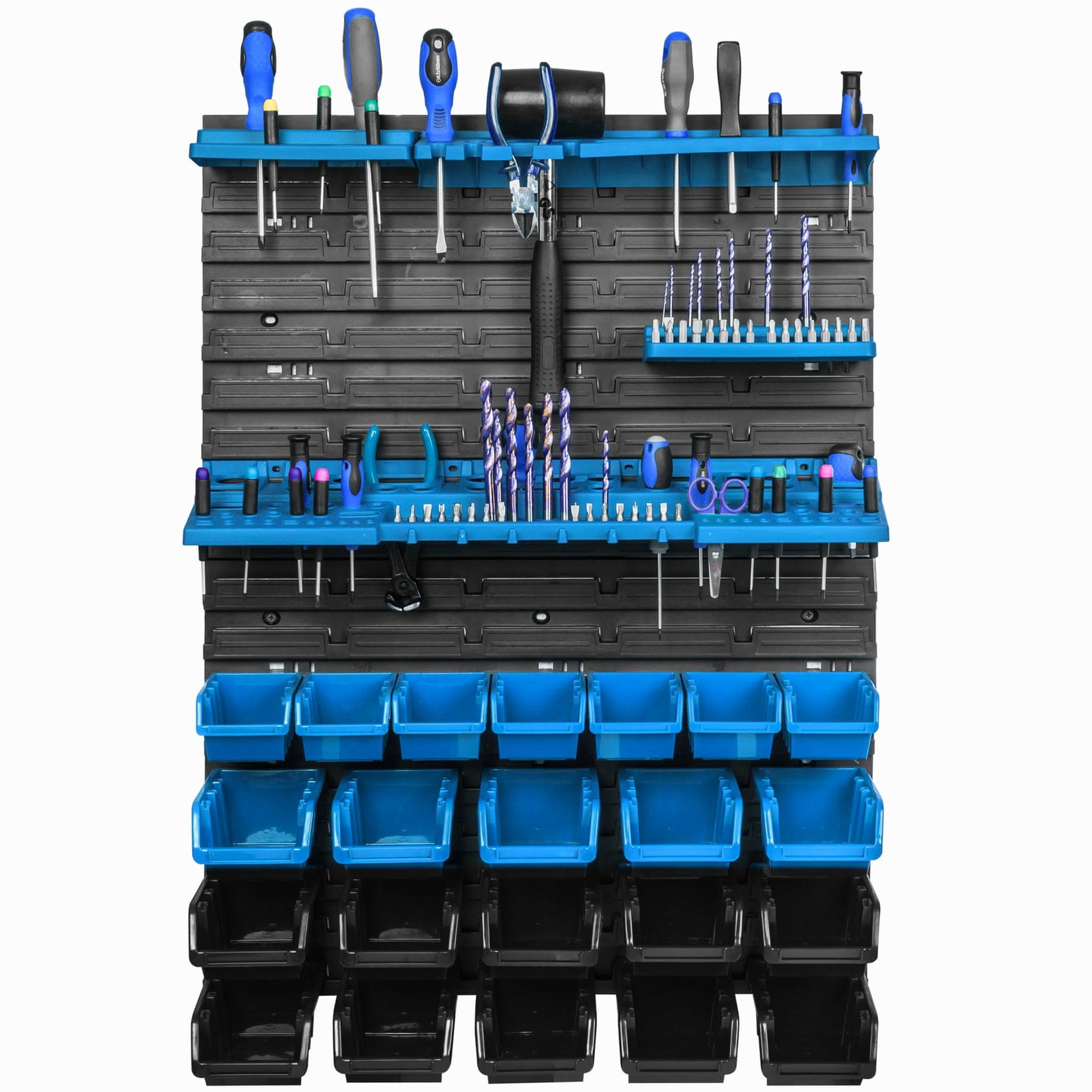 Viseča plošča za orodje 58 × 78 cm z 22 kos Škatla stenskih Modra in Črna škatle plastika
