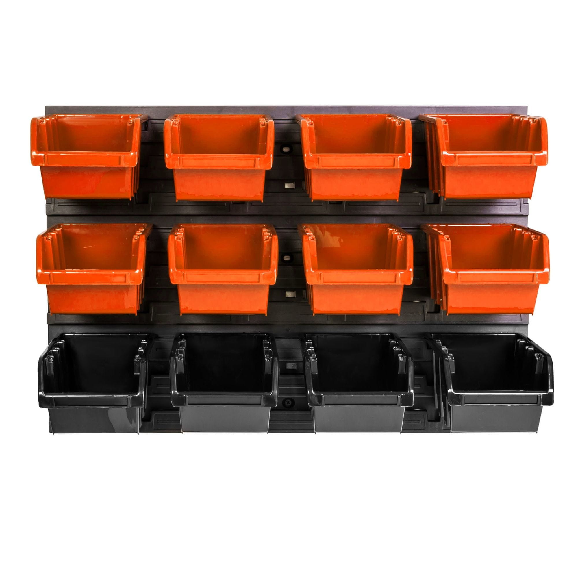 botle Viseča plošča za orodje 58 x 39 cm z 15 kos Škatla stenskih Oranžna in Črna škatle plastika