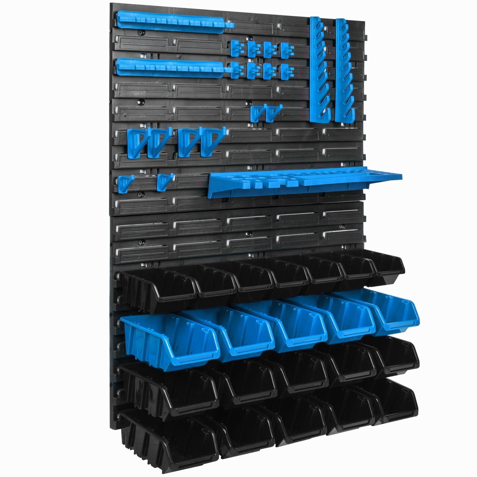 Viseča plošča za orodje 58 × 78 cm z 22 kos Škatla stenskih Modra in Črna škatle plastika