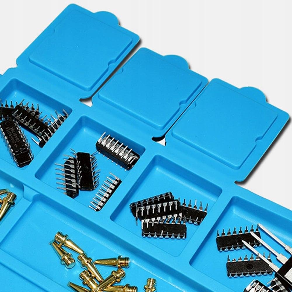 Silikonska podloga ima 3 magnetne žepke . Ko tja vstavite tudi najmanjše vijake, bodo ostali na mestu, tudi če podložko premaknete. Naj vas ne zajebejo vijaki, ki uhajajo iz mize! Delajte udobno in hitro z vsem, kar potrebujete pri roki.