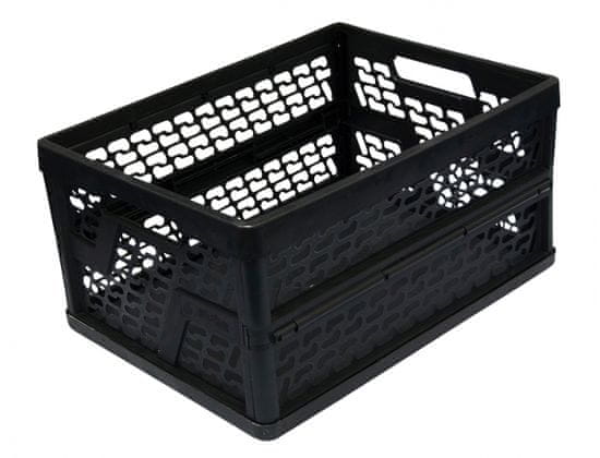 Zložljiv zaboj je namenjen za rokovanje ali shranjevanje. Ni primerno za neposreden stik z živili. Mogoče ga je zlagati – 8 zabojev lahko zložite enega na drugega. Nosilnost je 10 kg. Barva: črna. Teža: 1,1 kg, mere: 48 × 35 × 24 cm.