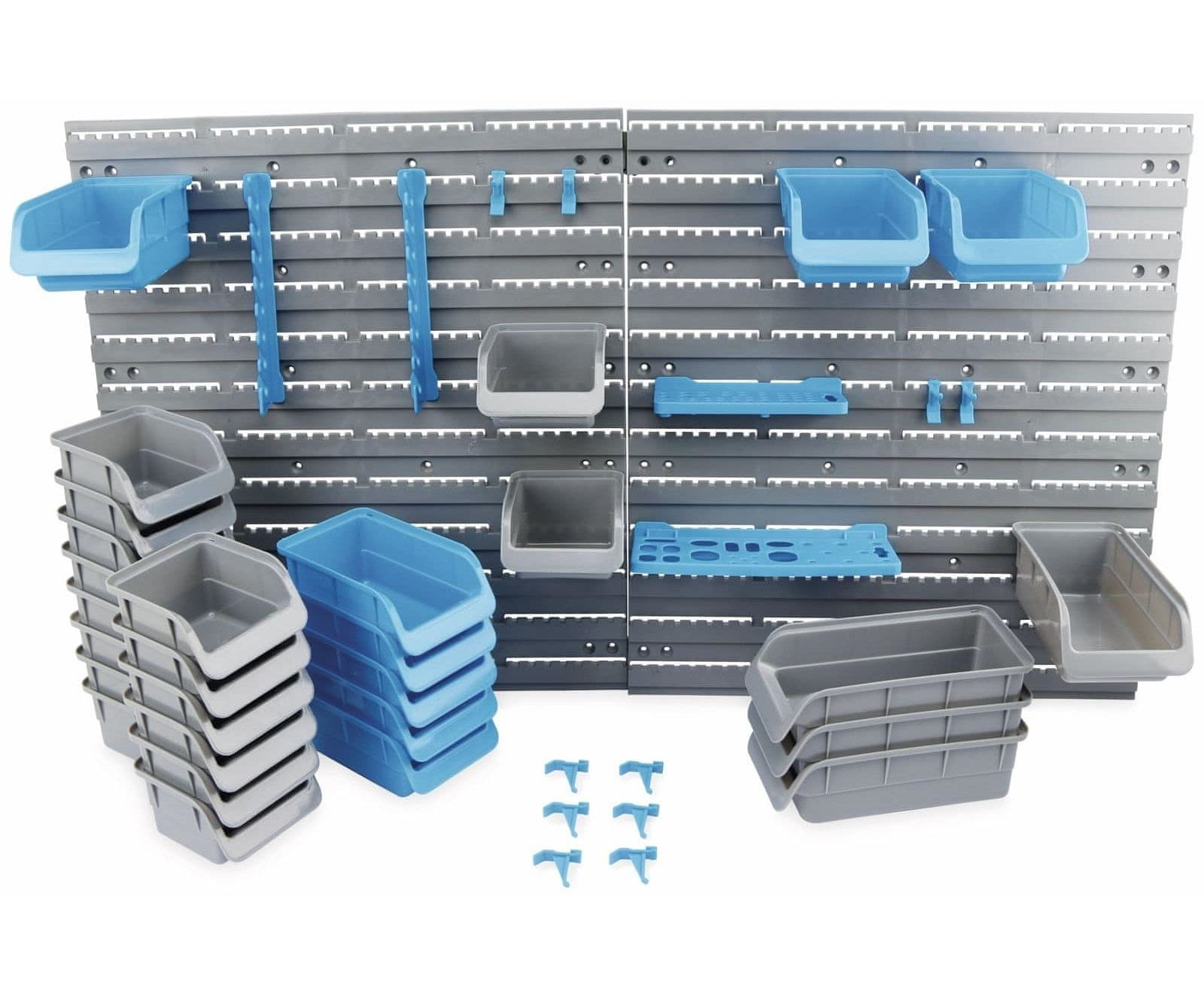 Praktične škatle za zlaganje iz plastike, odporne na udarce, za shranjevanje majhnih delov, kot so vijaki, gumbi itd. Dobavljene z ustreznimi obešalnimi vodili.