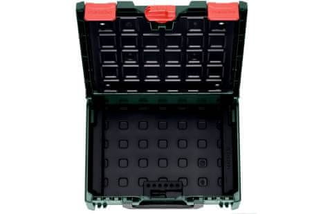 Inteligentni transportni in shranjevalni sistem za majhne dele in dodatke, opremljen z dvanajstimi prilagodljivimi vstavki Sortimo v štirih različnih velikostih, ki jih je mogoče prilagajati po potrebi. Vsak vstavek je trdno pritrjen na dno organizatorja, kar omogoča enostavno uporabo posameznih škatel. Poleg tega je sistem opremljen z dvanajstimi etiketami za prilagajanje označevanja vsebine. Ta sistem je izjemno vzdržljiv in odporen, zasnovan za največjo kapaciteto obremenitve, kar zagotavlja varno shranjevanje in zaščito orodja pred umazanijo in vlago (IP43). Poleg tega je enostaven za uporabo, saj omogoča hitro zlaganje in združevanje škatel različnih sistemskih širin, brez potrebe po razdruževanju. Pametna dodatna oprema vključuje kolesno desko in voziček za maksimalno mobilnost ter adapter ploščo za pritrditev škatel v vozilu, kar še dodatno izboljša funkcionalnost tega inovativnega sistema za organizacijo in transport majhnih delov in dodatkov.