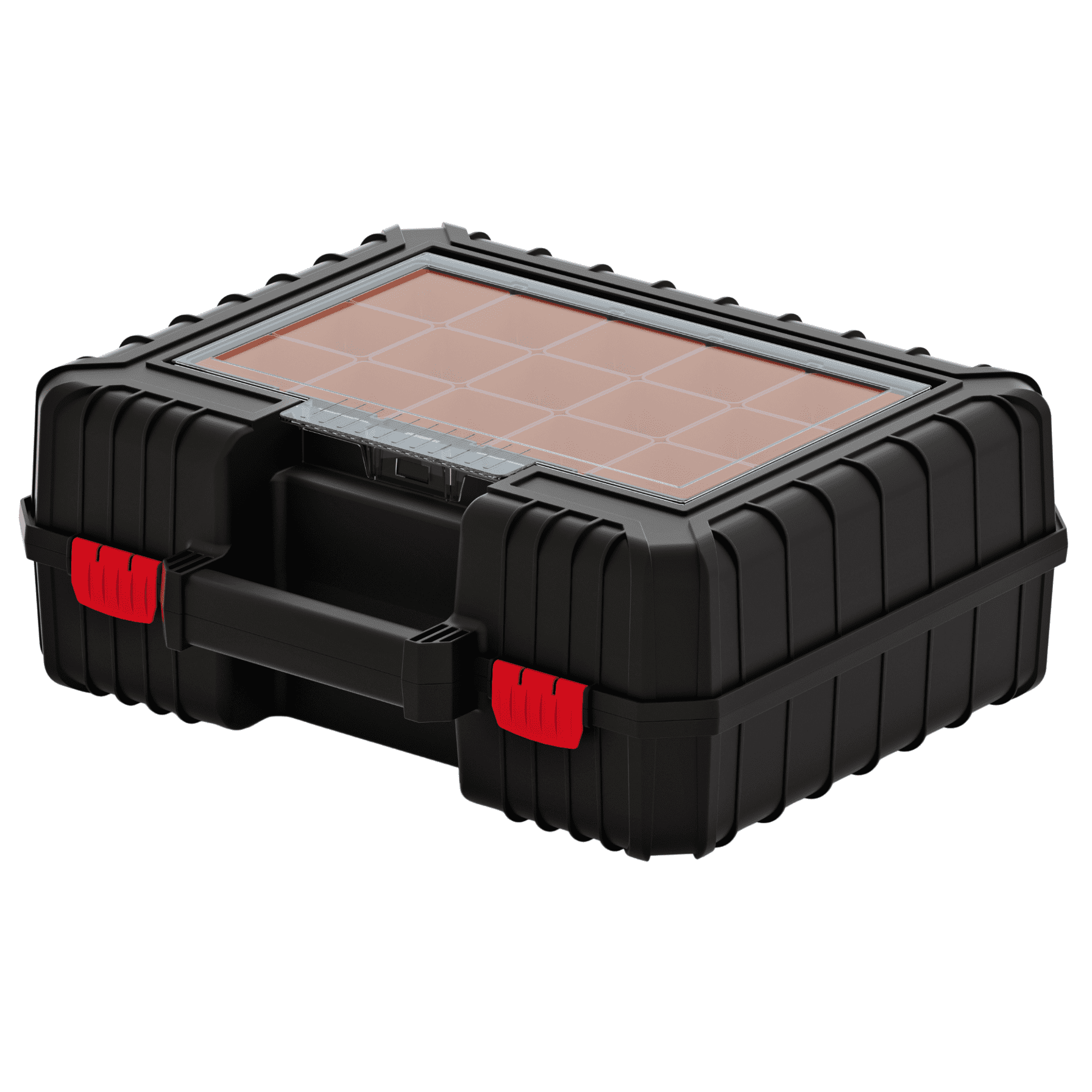 Prozoren organizator s polikarbonatnim pokrovom olajša organizacijo, ergonomske zaponke pa zagotavljajo varno zapiranje. Idealna za shranjevanje in prenašanje orodja v različnih situacijah.