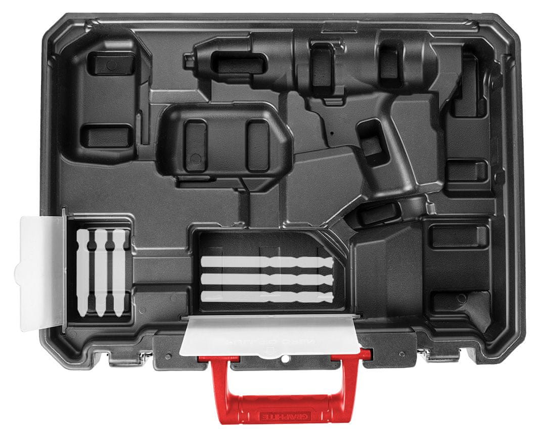 Kovček za vrtalnike/vijačnike Energy+ GRAPHITE vam omogoča shranjevanje naprave in dodatkov ter njihovo organiziranost. Kovček je združljiv z vrtalniki/vijačniki Energy+. V njem shranite tudi polnilnik, dve bateriji in škatlo za orodje. Kovček ima udoben ročaj in je pritrjen s kovinskimi zaponkami.