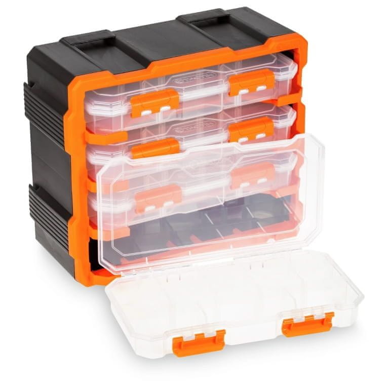 Ta modularni organizator za delavnico s 4 posodami ponuja vsestransko in trpežno rešitev za shranjevanje v delavnicah, garažah in domovih. Izdelan je iz visokokakovostne plastike, zato ponuja dolgotrajno vzdržljivost in odpornost proti poškodbam. Organizator ima 4 posode, ki jih je mogoče prosto konfigurirati glede na vaše individualne potrebe. Lahko ga postavite na pult ali namestite na steno, kar poveča njegovo funkcionalnost in prihrani prostor. Prozorne posode vam omogočajo hitro in enostavno iskanje vsebine. Prednosti: ✅ Vsestranskost: Idealen za delavnice, garaže in domove. ✅ Trpežna konstrukcija: Izdelan je iz visokokakovostne, odporne na poškodbe plastike. ✅ Prozorne posode: Omogočajo vam hitro in enostavno iskanje vsebine. ✅ Modularnost: Posode je mogoče prosto konfigurirati glede na vaše individualne potrebe. ✅ Možnosti montaže: Lahko ga postavite na pult ali namestite na steno, kar prihrani prostor. ✅ Organizacija: Pomaga vzdrževati red in organizacijo s shranjevanjem orodja, vijakov, matic in drugih majhnih predmetov. ✅ Funkcionalnost: Enostaven dostop do vsebine posod zaradi priročne razporeditve in preglednosti. ✅ Estetski videz: Estetska oblika poskrbi, da je privlačen na vsakem delovnem mestu. Parametri: ✅ Vrsta: Organizator za delavnico ✅ Material: Plastika ✅ Barva: Črna, oranžna, prozorna ✅ Višina: 32,4 cm ✅ Širina: 38,2 cm ✅ Debelina: 18,4 cm ✅ Dimenzije posode: 32×18×5 cm ✅ Število posod: 4 Cena je za 1 kos!!