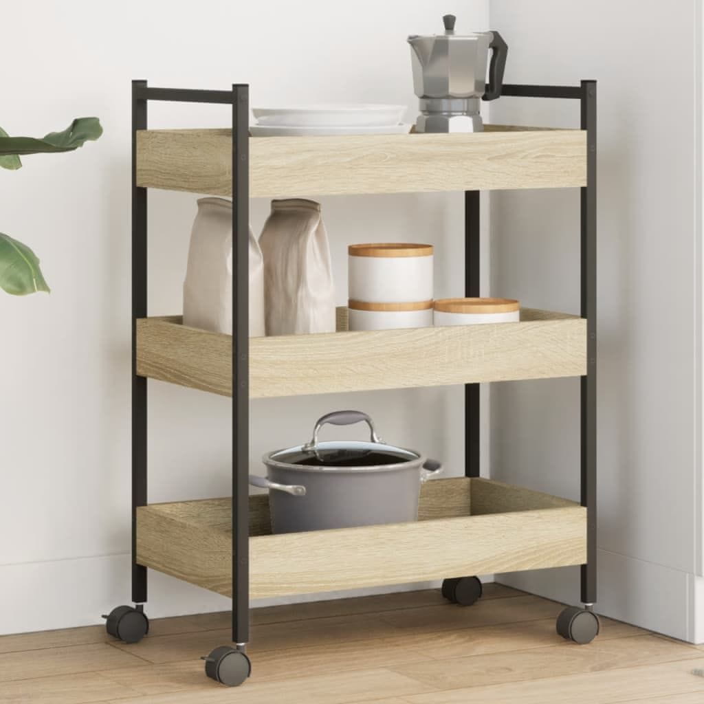 vidaXL Kuhinjski voziček sonoma hrast 50×30×70 cm inženirski les Celoten opis