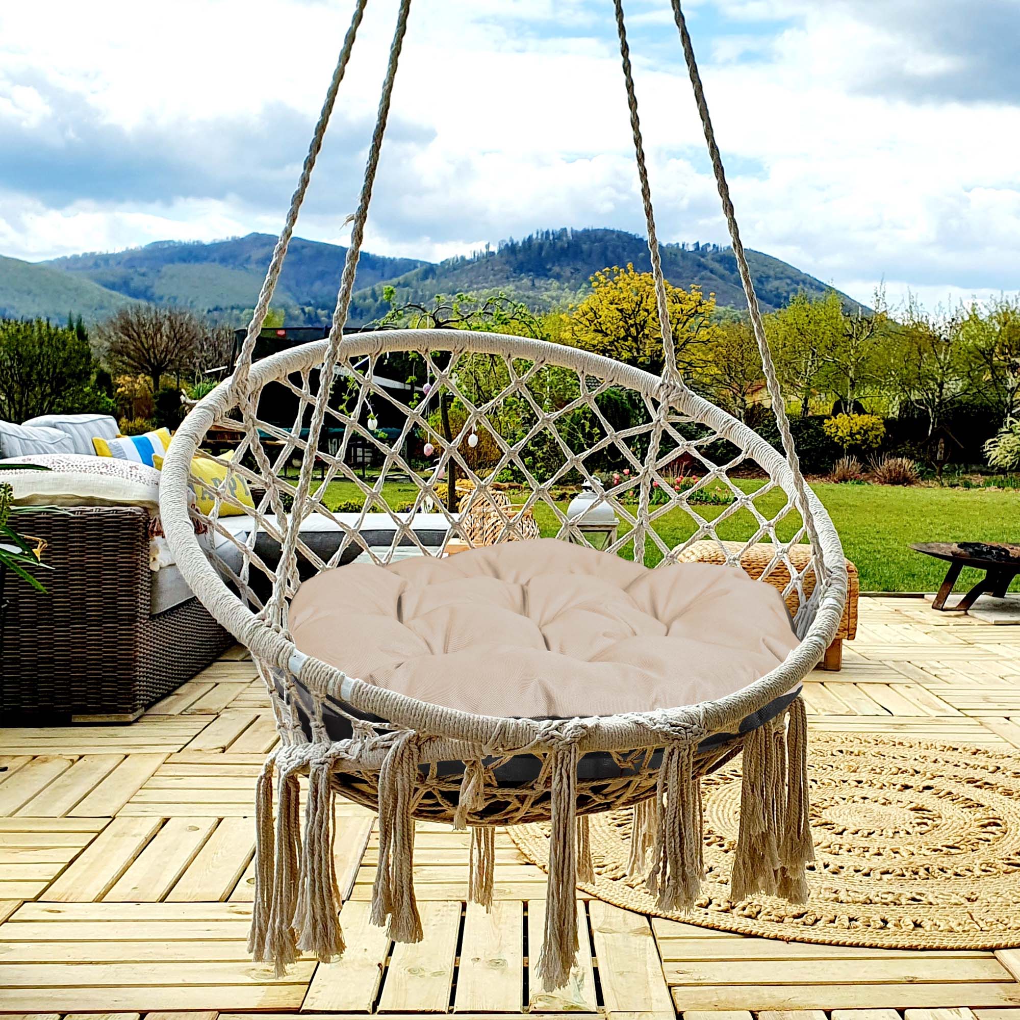 Vrtna blazina 110 cm za viseči stol štorkljino gnezdo vodoodporno kapučino Celoten opis