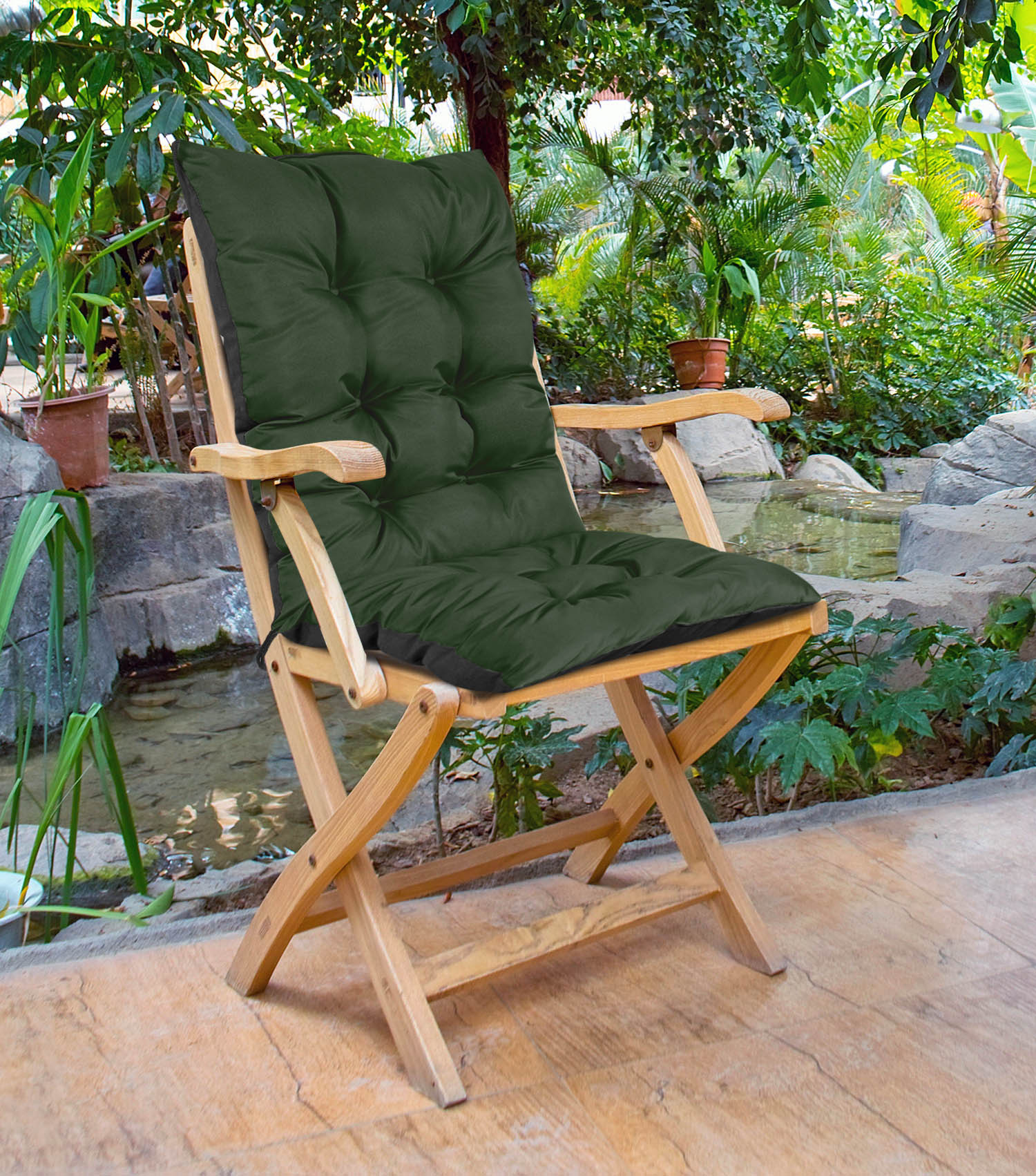 Trpežen VODOODPOREN vrtni stol z blazino za sedenje in naslonjalo v zeleni barvi, UDOBJE in zadovoljstvo zagotovljeno!