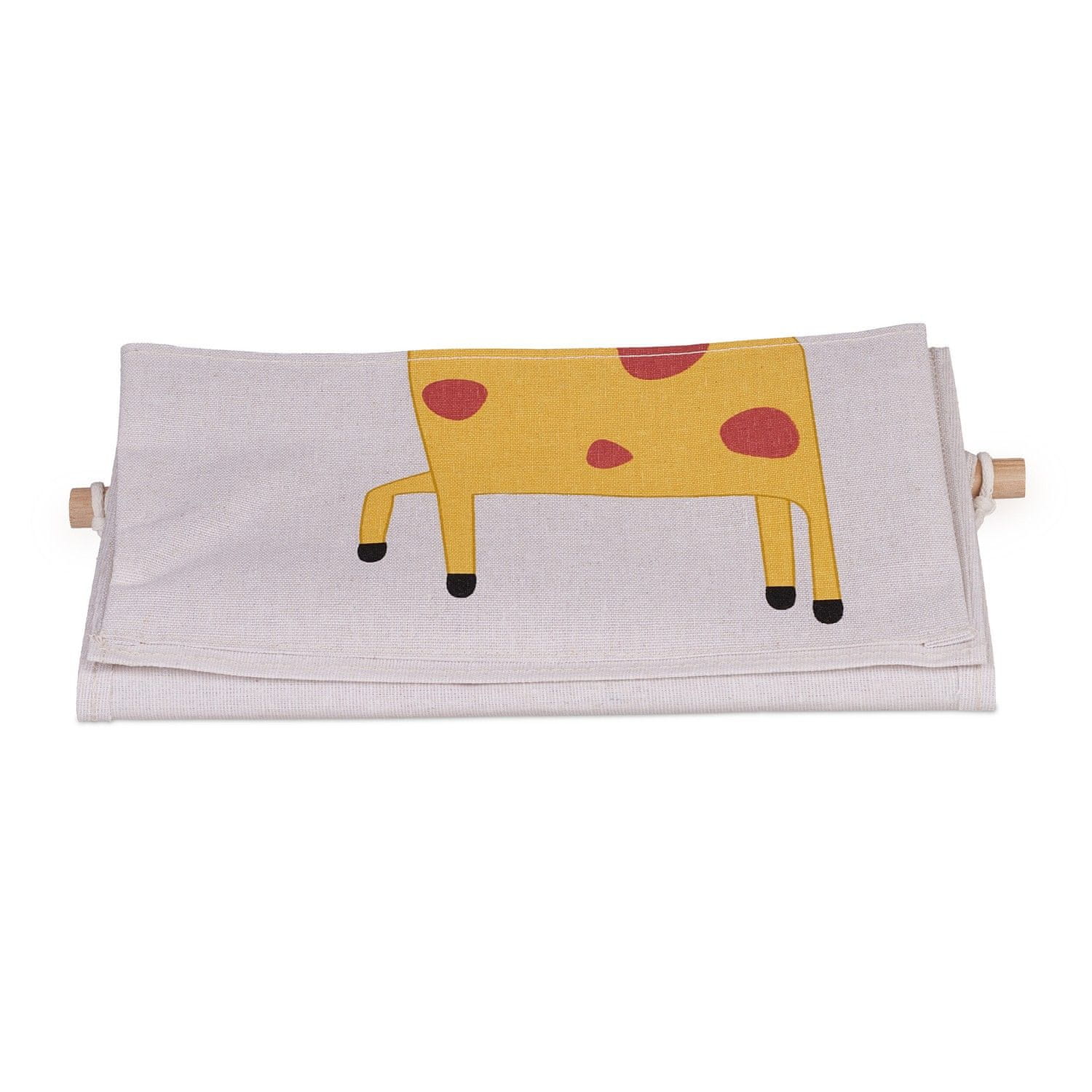 Bombažni stenski organizator je praktična rešitev za shranjevanje v otroški sobi, ki ponuja dovolj prostora s tremi prostornimi predelki za igrače in knjige.