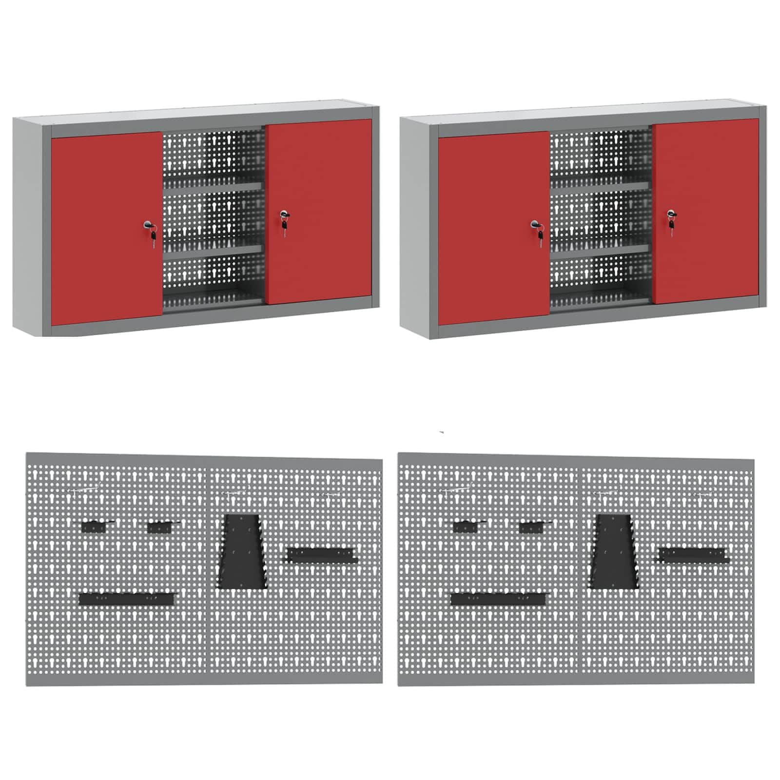 Vidaxl Delovna omara s predalom 10 pcs Rdeča Inženirski les in jeklo
