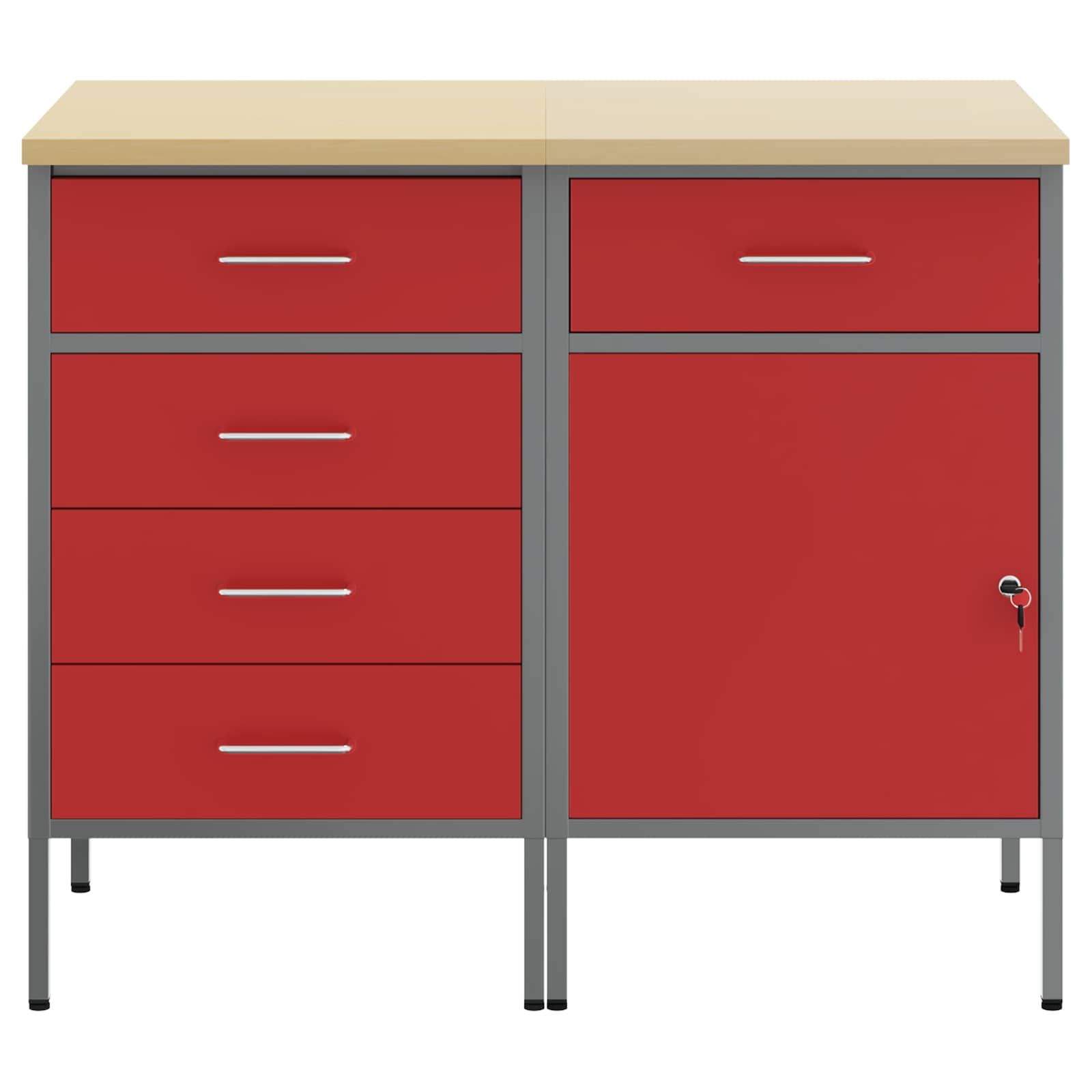 Vidaxl Delovna omara s predalom 2 pcs Rdeča in siva 75 x 45 x 85 cm