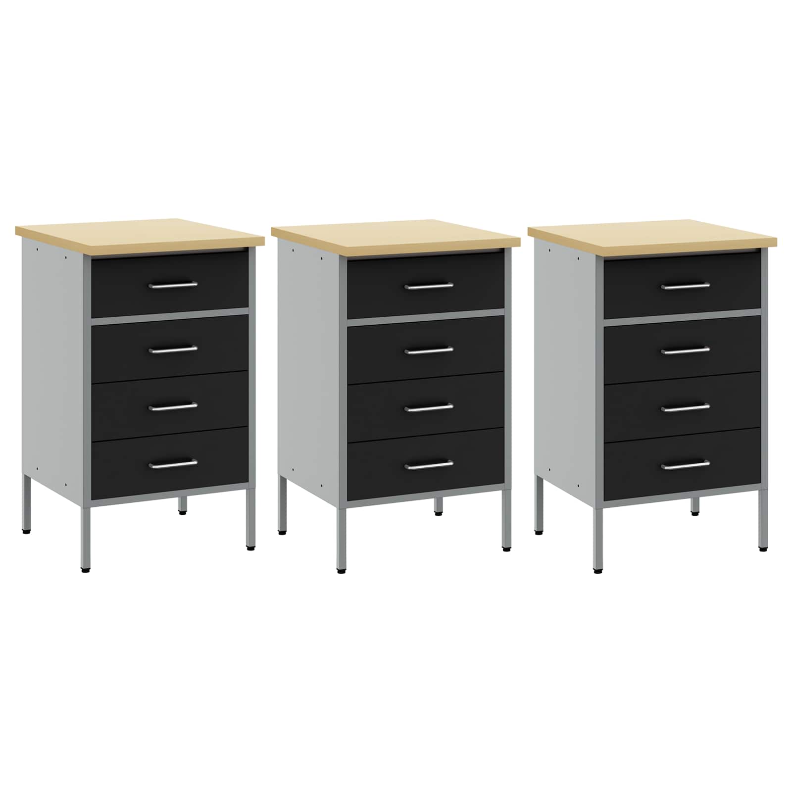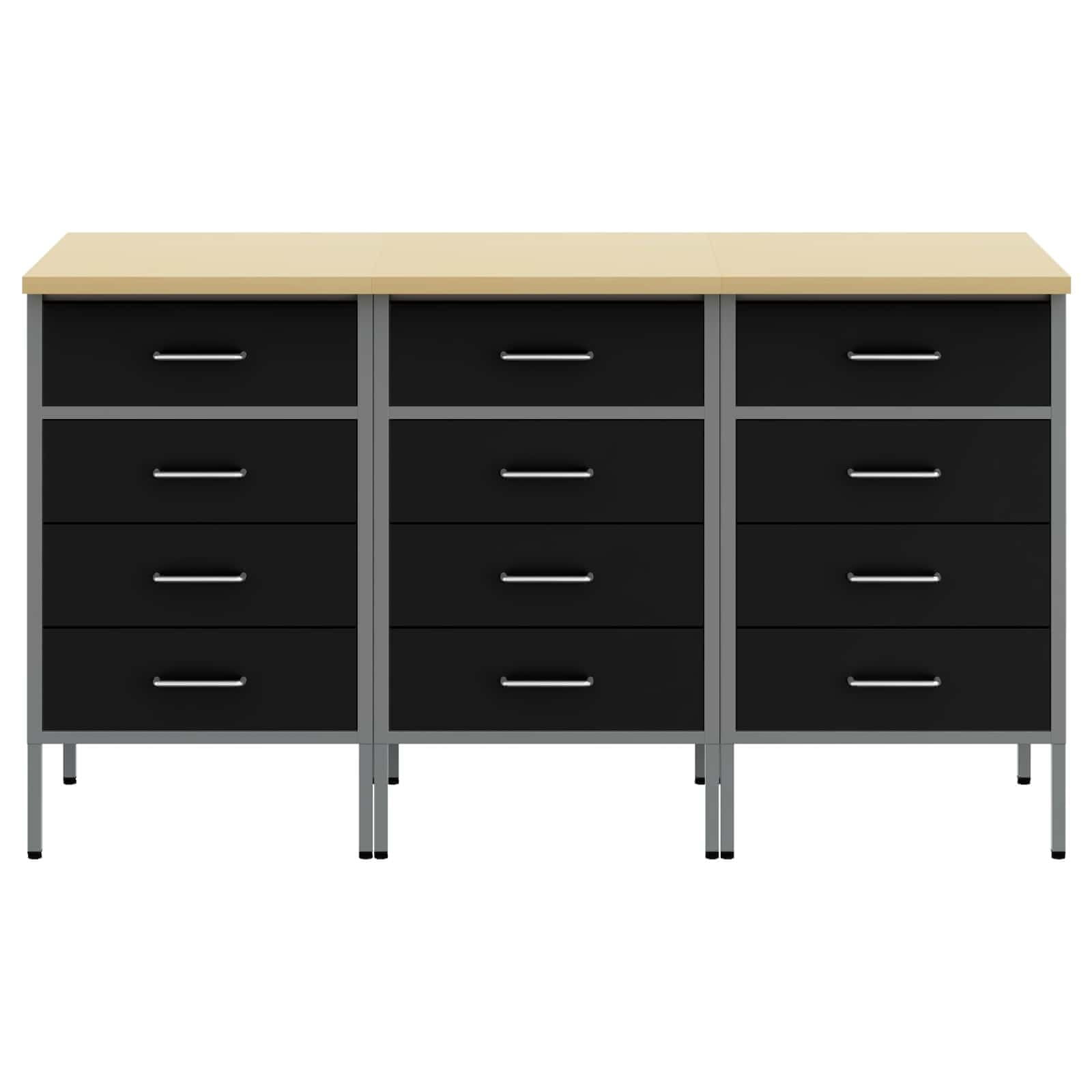 Vidaxl Delovna omara s predalom 3 pcs Črna in siva 150 x 55 x 85 cm