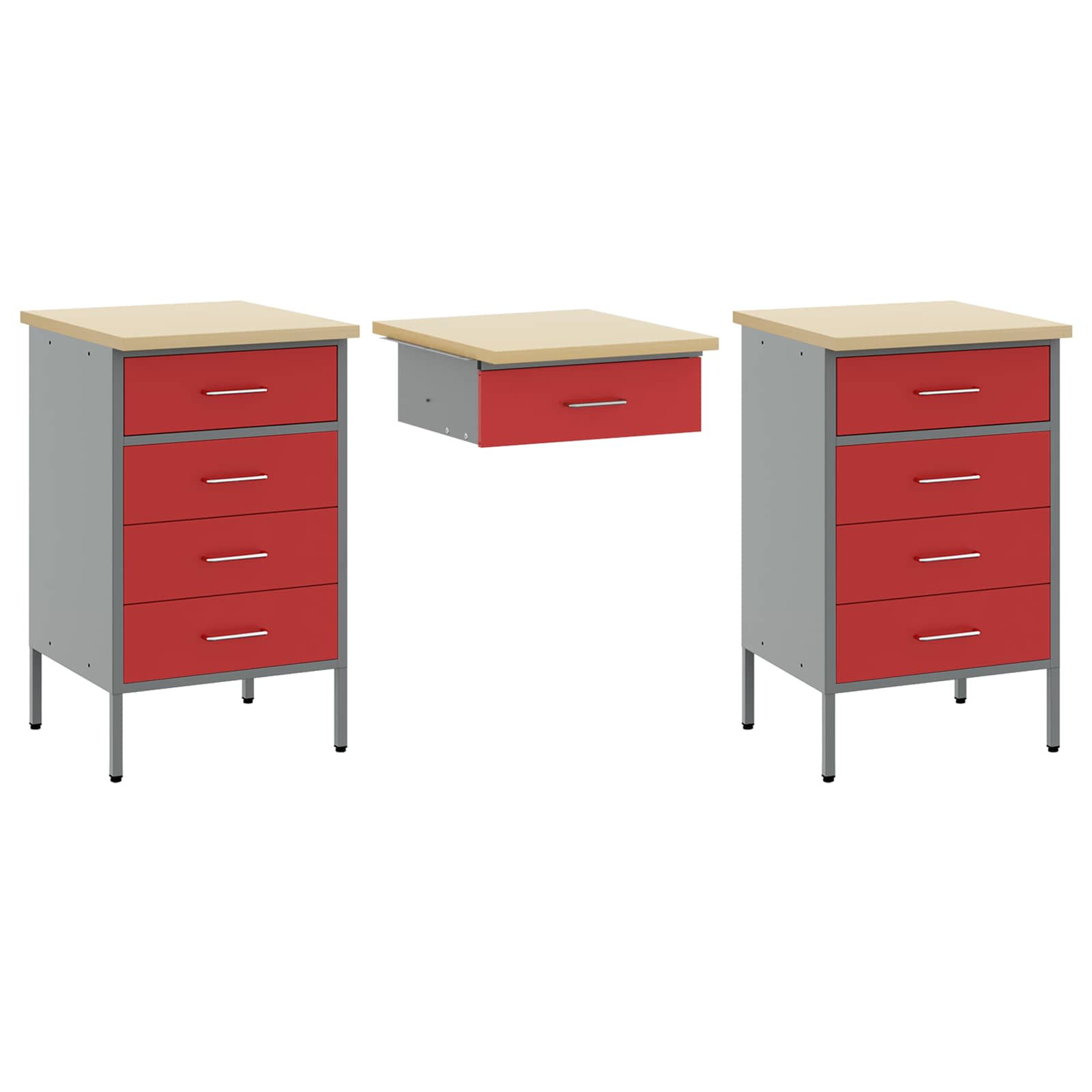 Vidaxl Delovna omara s predalom 3 pcs Rdeča Inženirski les in jeklo