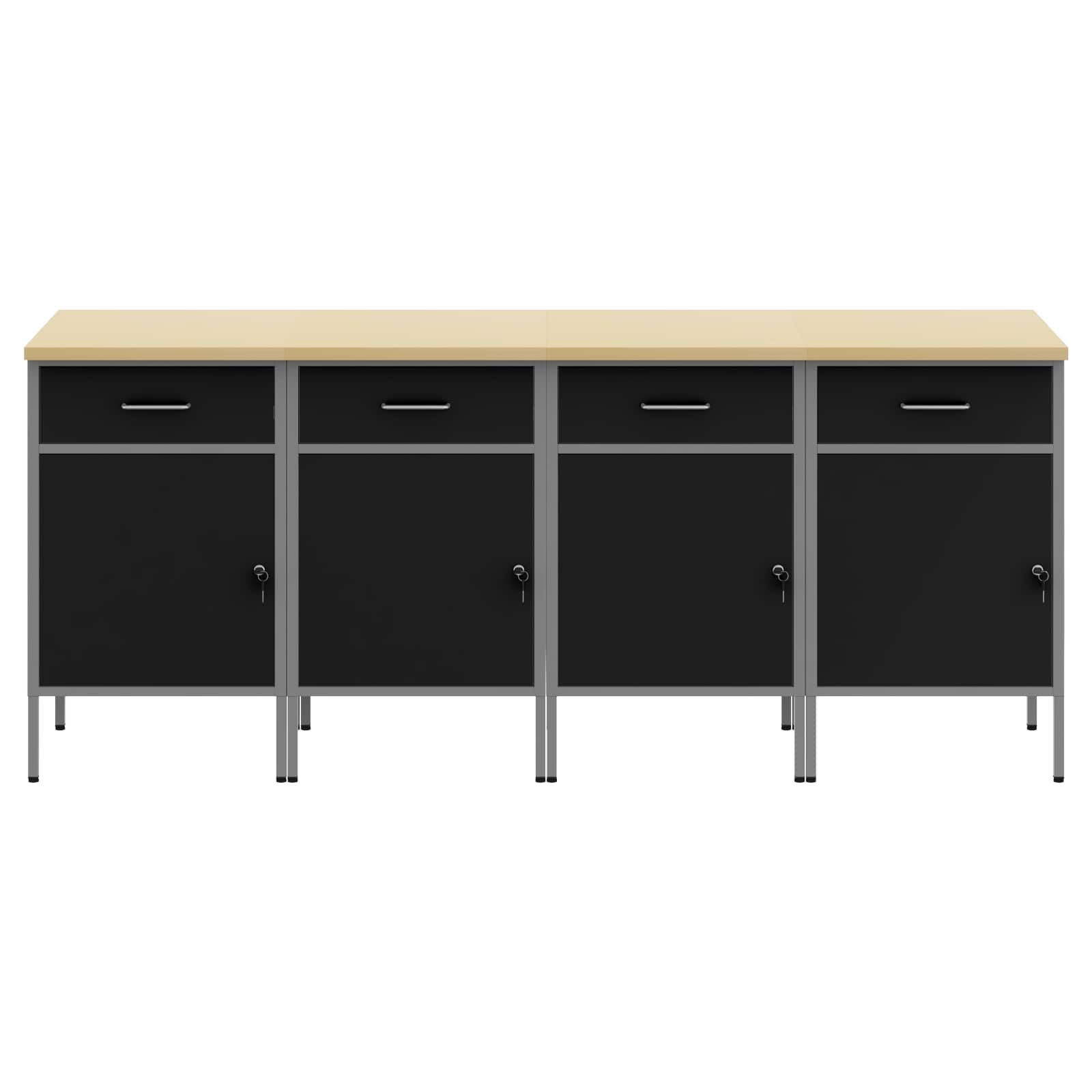 • Prilagodljivo shranjevanje: S prostori, predali in policami ta kabinet ponuja odlične rešitve za organizacijo. Omogoča enostavno razvrščanje orodij in materialov ter optimizira delovni prostor. Njegova zasnova se prilagaja potrebam po shranjevanju, tako da se oglasite z velikimi orodji ali manjšimi dodatki.