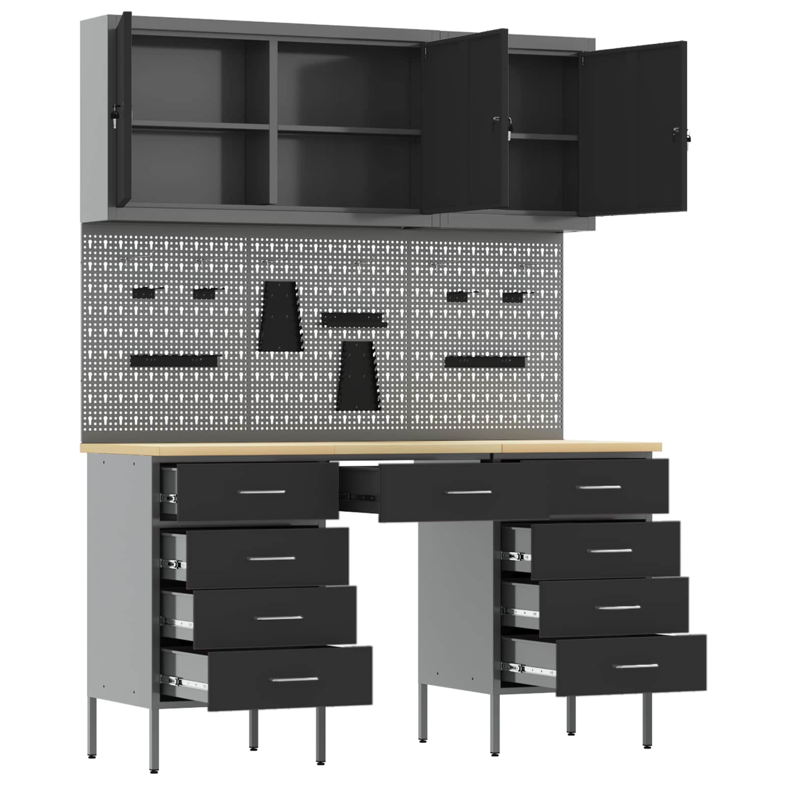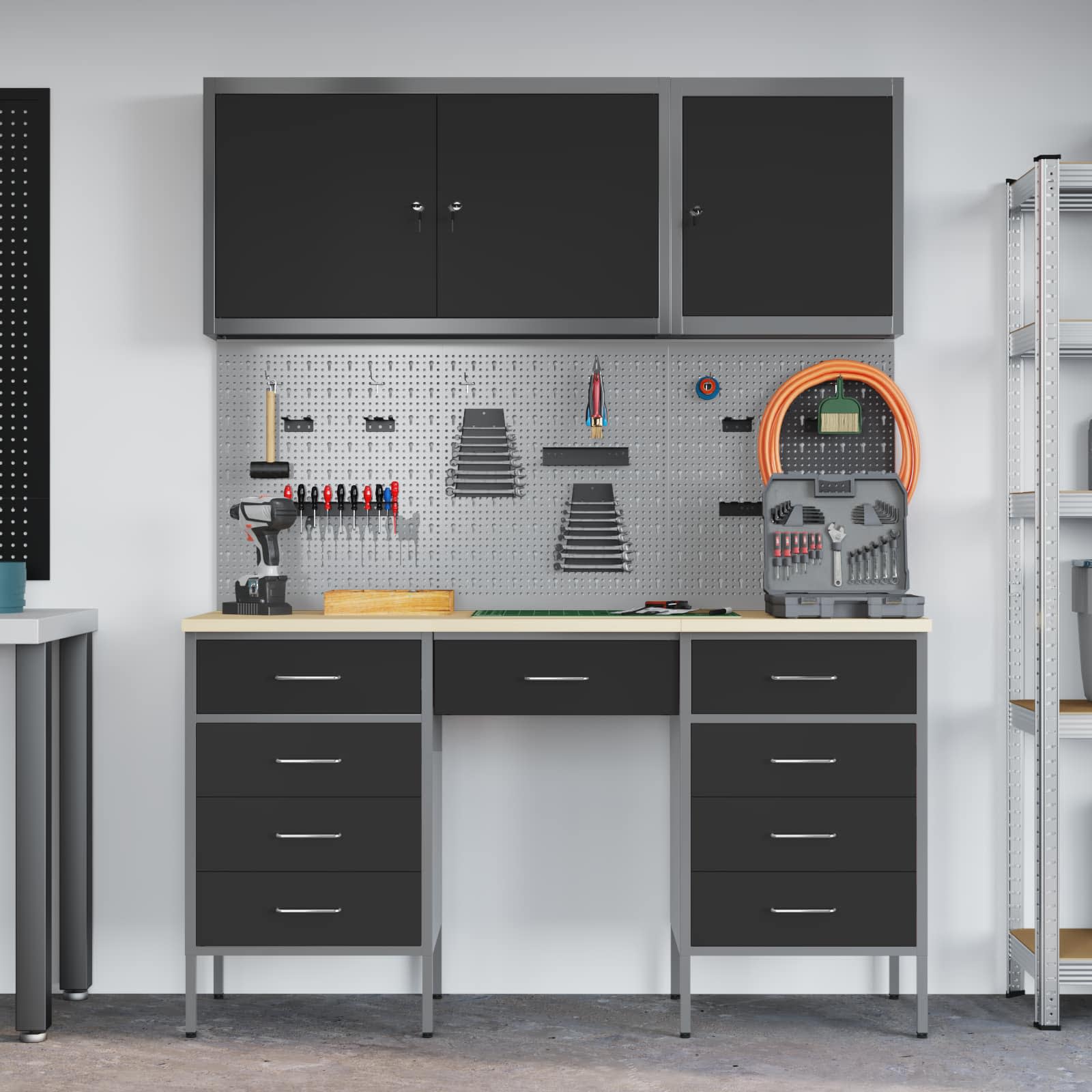 Vidaxl Delovna omara s predalom 8 pcs Črna Inženirski les in jeklo