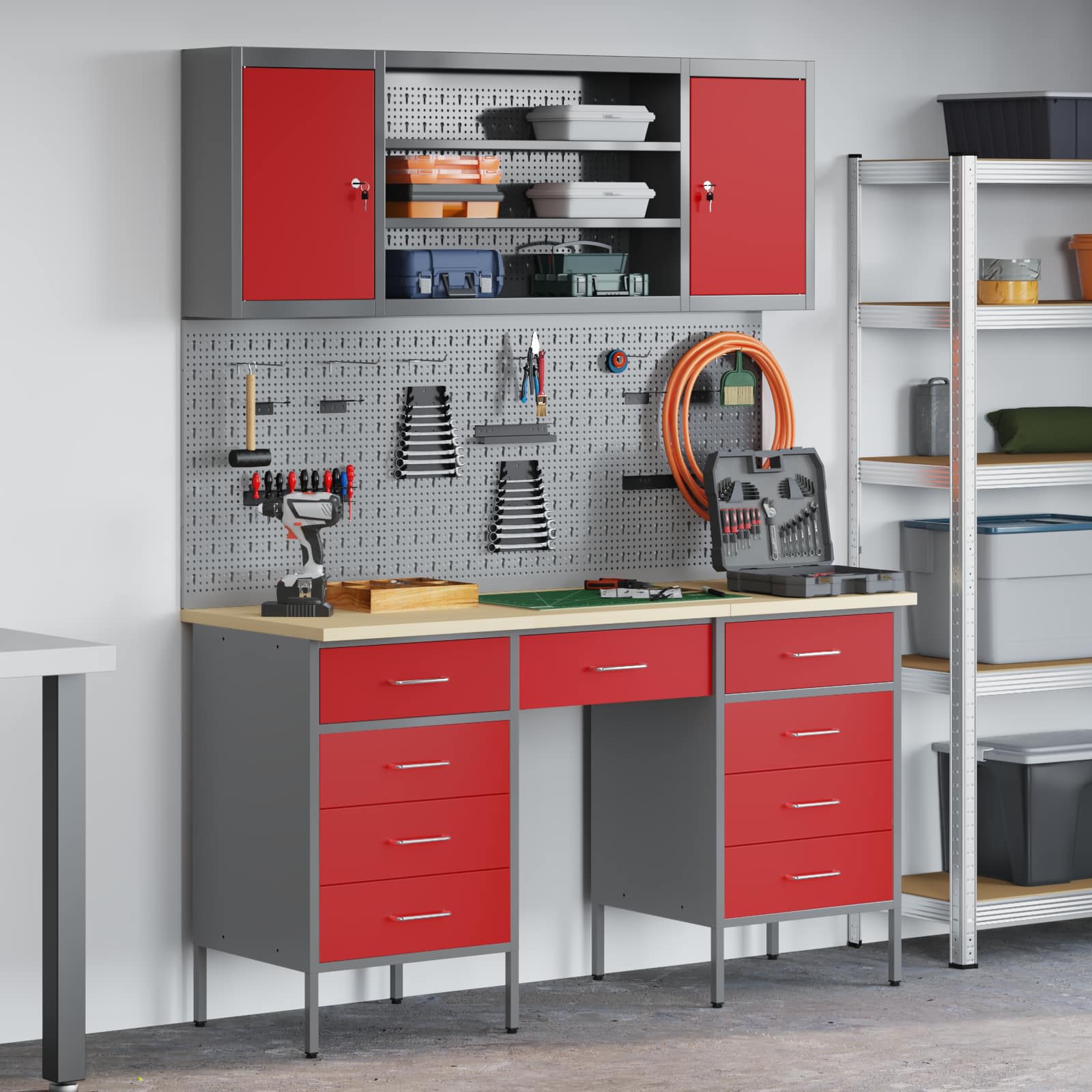 Vidaxl Delovna omara s predalom 8 pcs Rdeča Inženirski les in jeklo