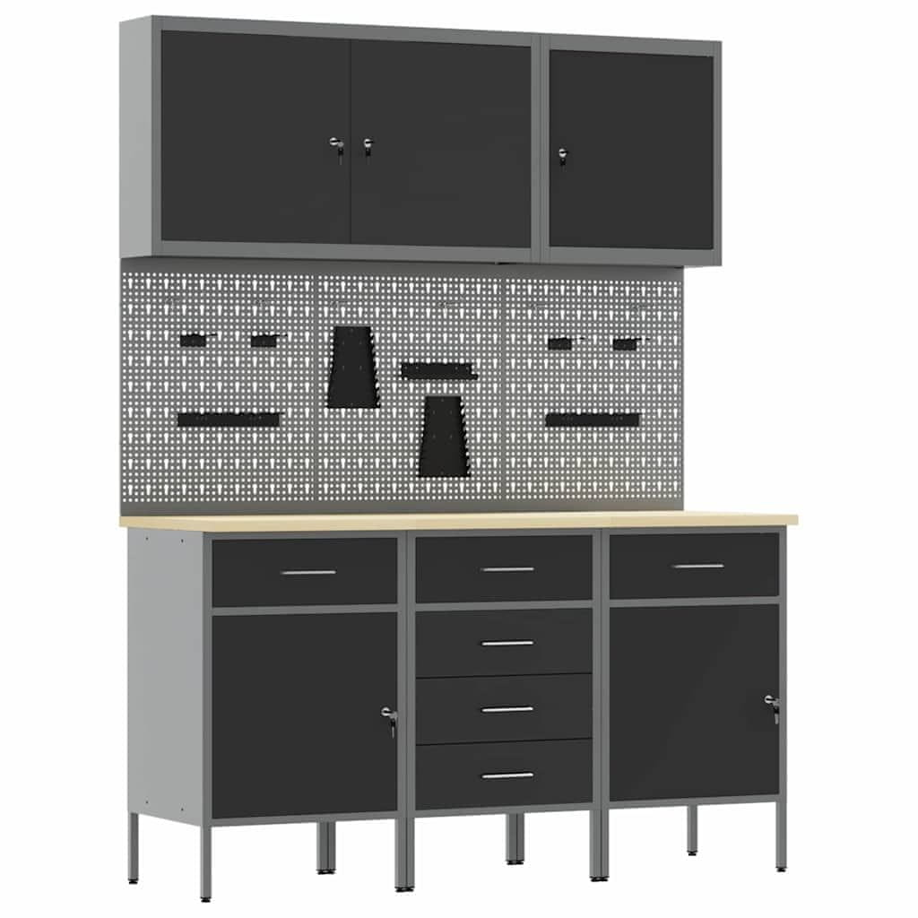 Vidaxl Delovna omara s predalom 8 pcs Črna Inženirski les in jeklo