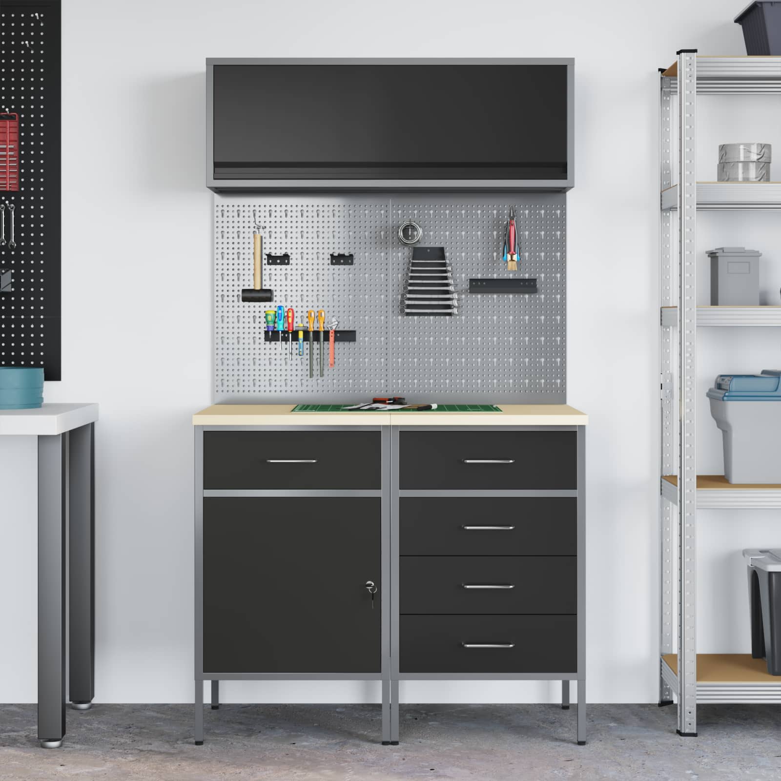 • Priporočene uporabe: Ta omarica je perfektna za delovne prostore in je odlična izbira za mojstre in strokovnjake, ki potrebujejo organizirano shranjevanje orodij, priročnikov in dodatkov ter ponuja vzdržljivost, kar se prilega vsakemu notranjemu delovnemu prostoru.
