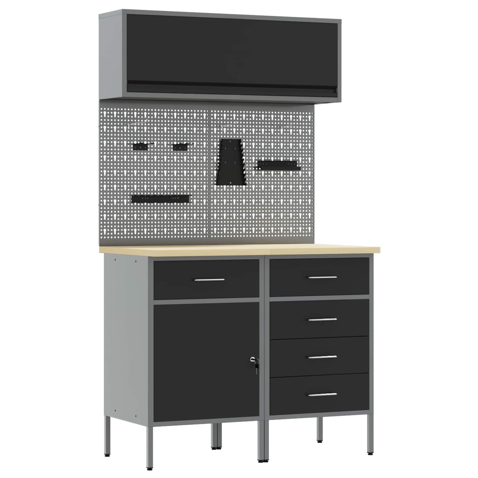 Vidaxl Set delovnih omar s predalom s polico s ključavnico 5 pcs Črna