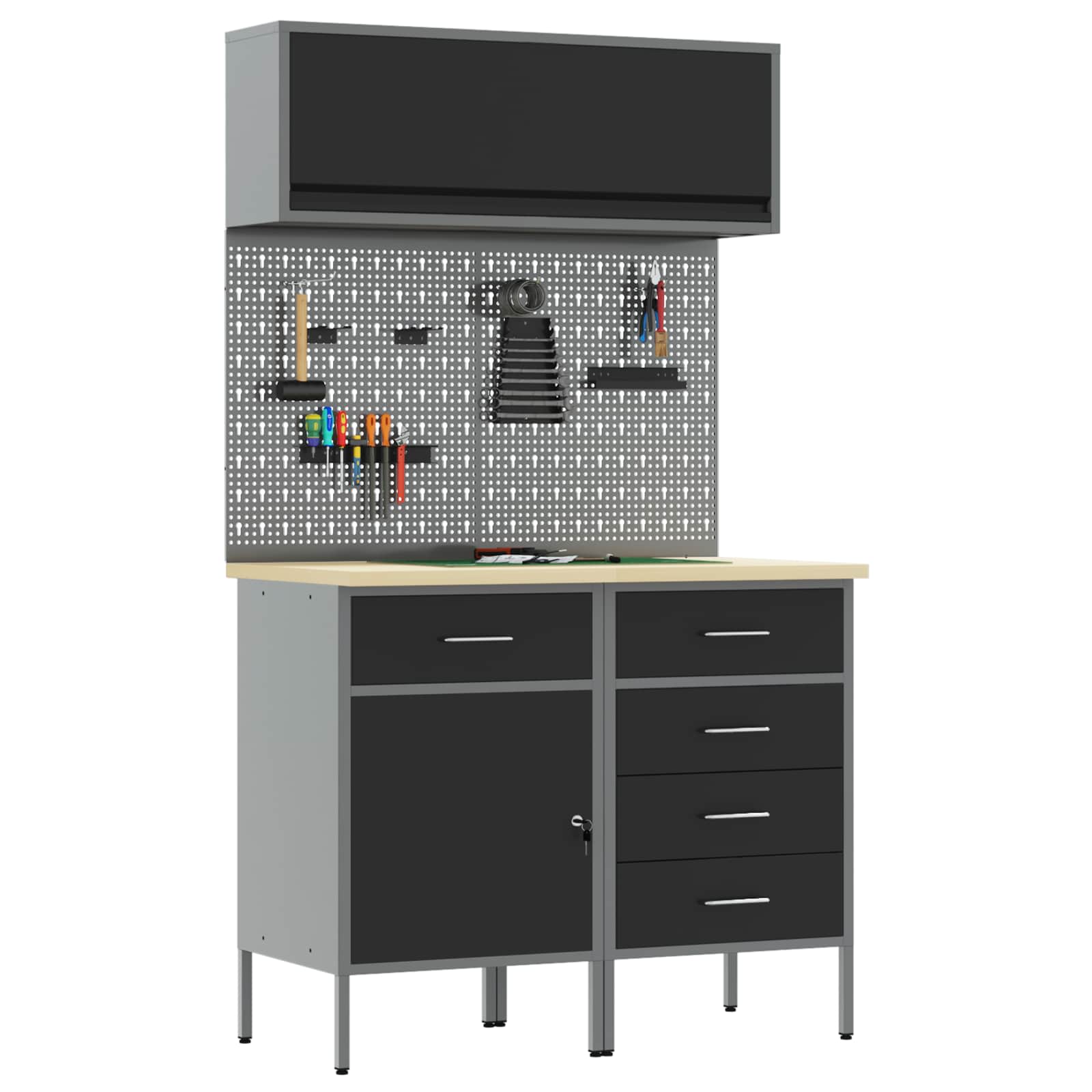 Ta delovna omara je zasnovana tako, da združuje funkcionalnost in estetiko, zato bo popestrila vsak delovni prostor. Njena elegantna pravokotna oblika in sodoben stil sta odlična za vse, ki cenijo lepo in organizirano okolje. Zasnovana je za enostavno rabo, kar je odlično za shranjevanje orodij, medtem ko ohrani čisto podobo delovnih prostorov.