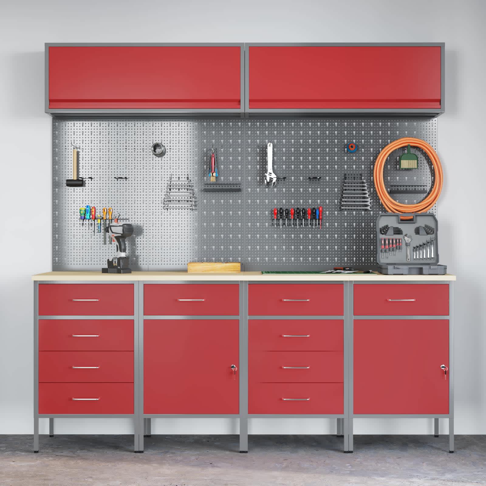 Vidaxl Set delovnih omar s predalom s shranjevanjem 10 pcs Rdeča
