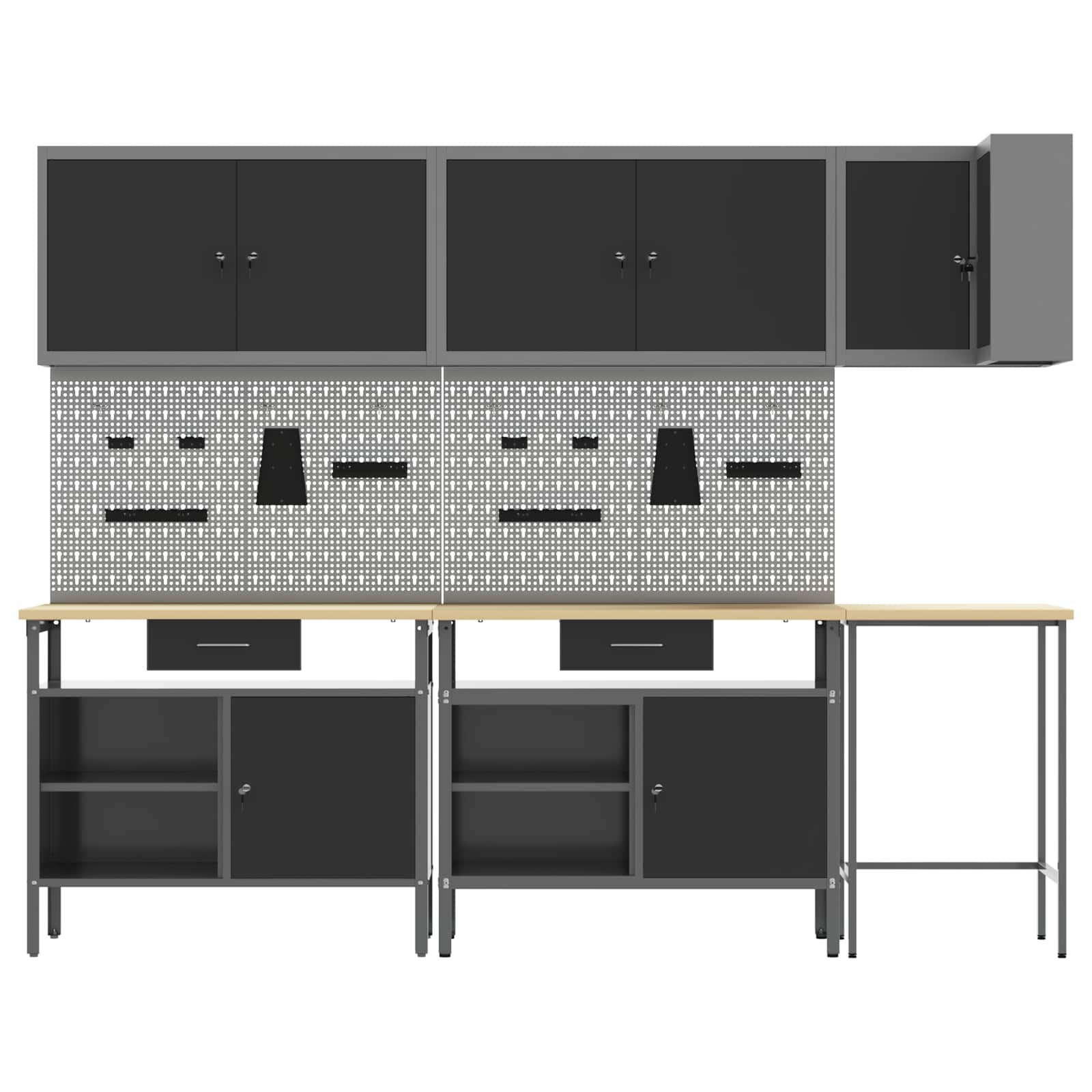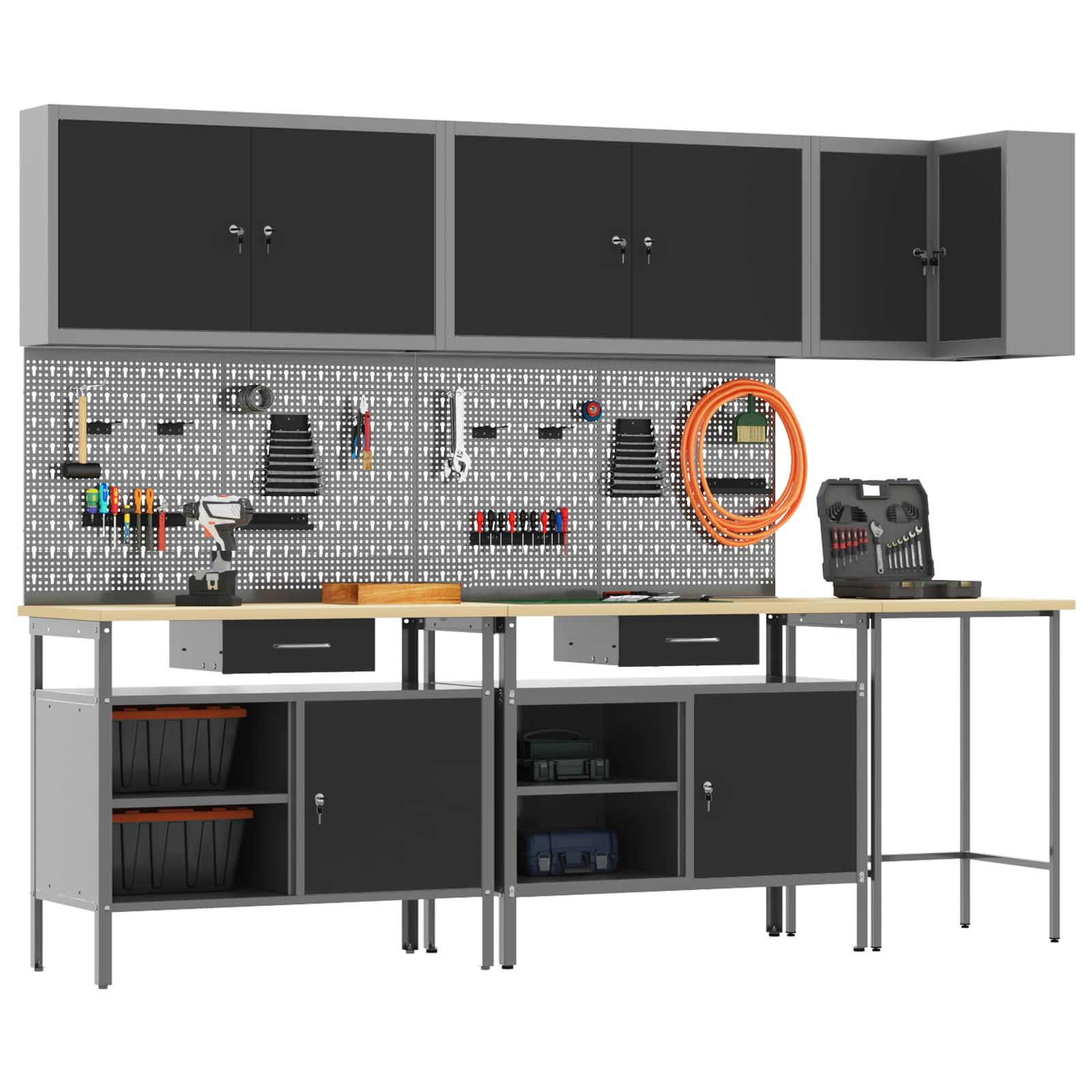 Vidaxl Set delovnih omar s predalom s polico 10 pcs Črna in siva