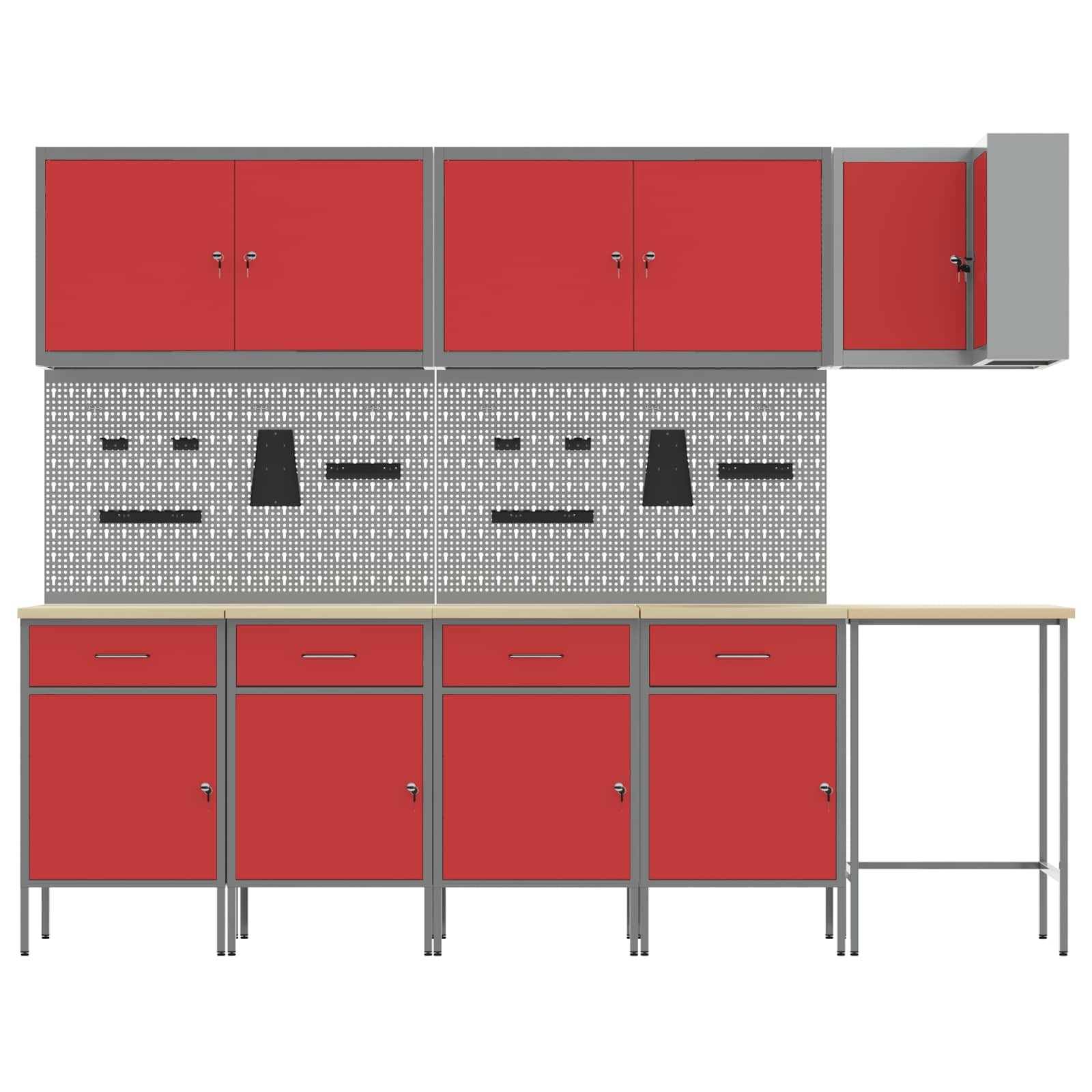 Vidaxl Set delovnih omar s predalom s polico 12 pcs Rdeča in siva