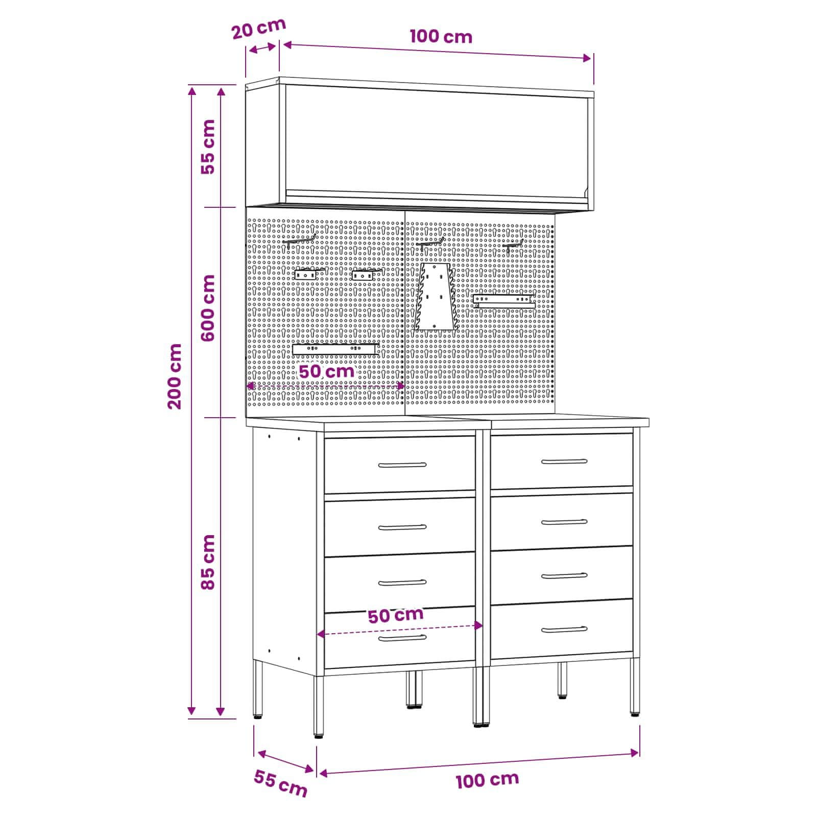 • 2 x Pegboard (vsak): 50 × 1 × 80 cm (D x Š x V)