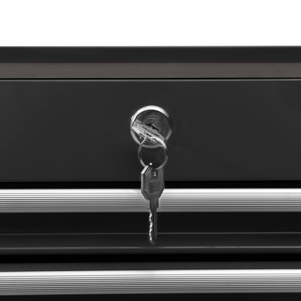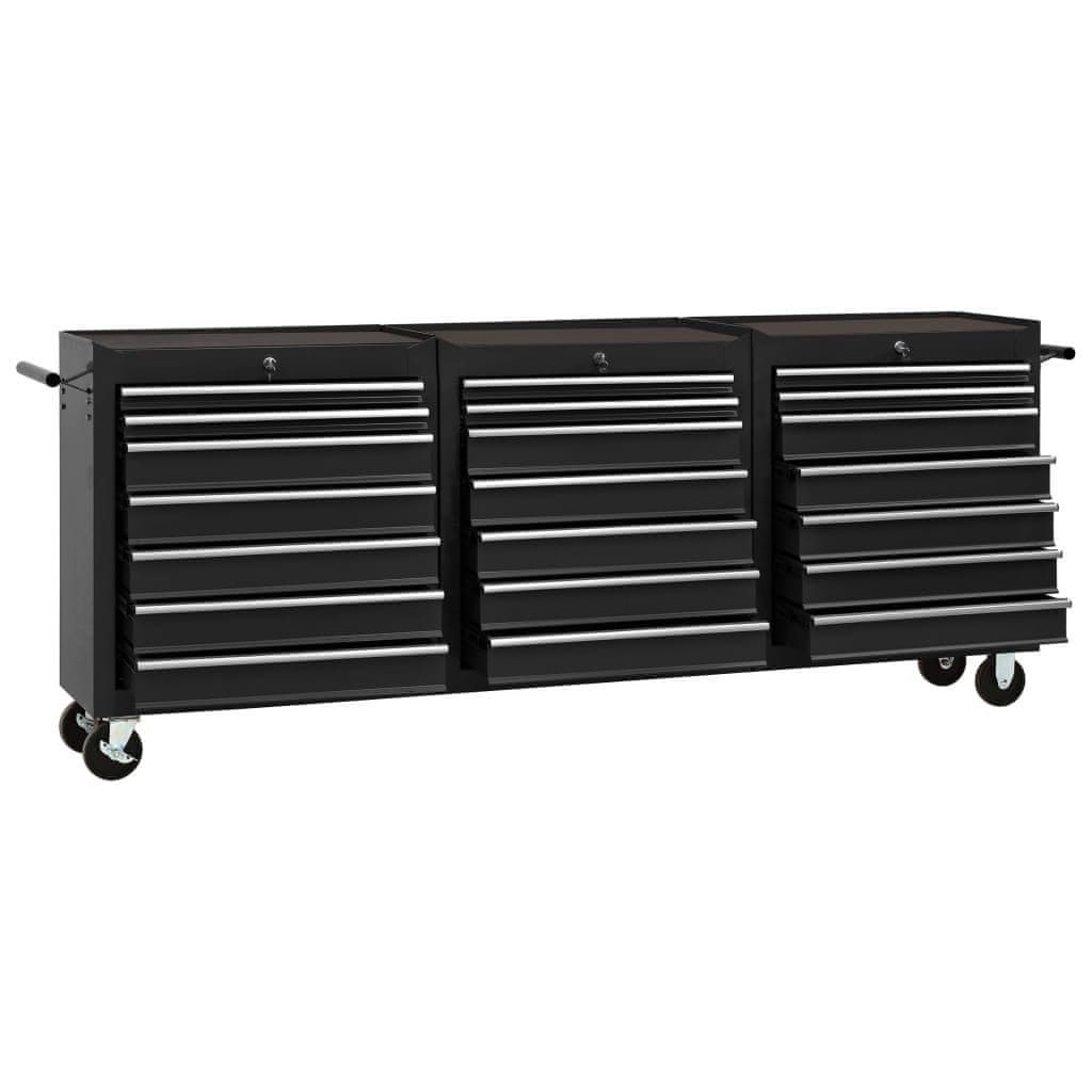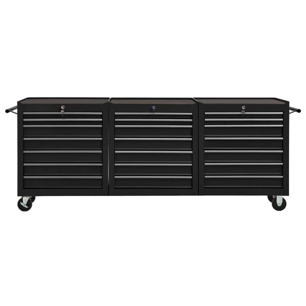 Vidaxl Voziček za orodje z 21 predali jeklen črn