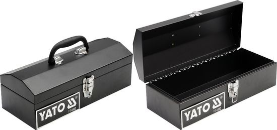 Kovinska škatla za shranjevanje orodja z ročajem za enostavno prenašanje. Škatla z dimenzijami 360 × 150 × 110 mm in maso 1,4 kg je izdelana iz jeklene pločevine. Ohišje se zapira z zaponko, ki jo je mogoče zakleniti s ključavnico. Celoten opis