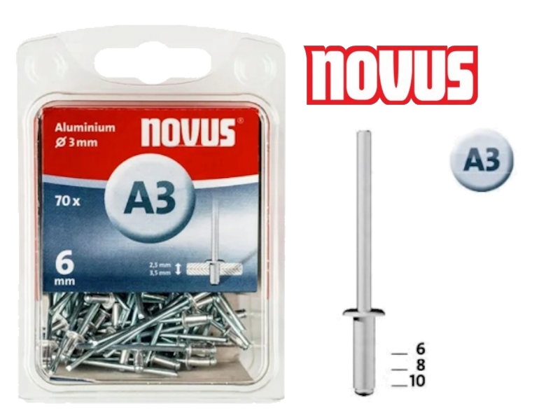 ALUMINIJASTE SLEPE KOVICE NOVUS A3/8 3×6mm [70 kosov] MOČNA SVETLOBA Celoten opis