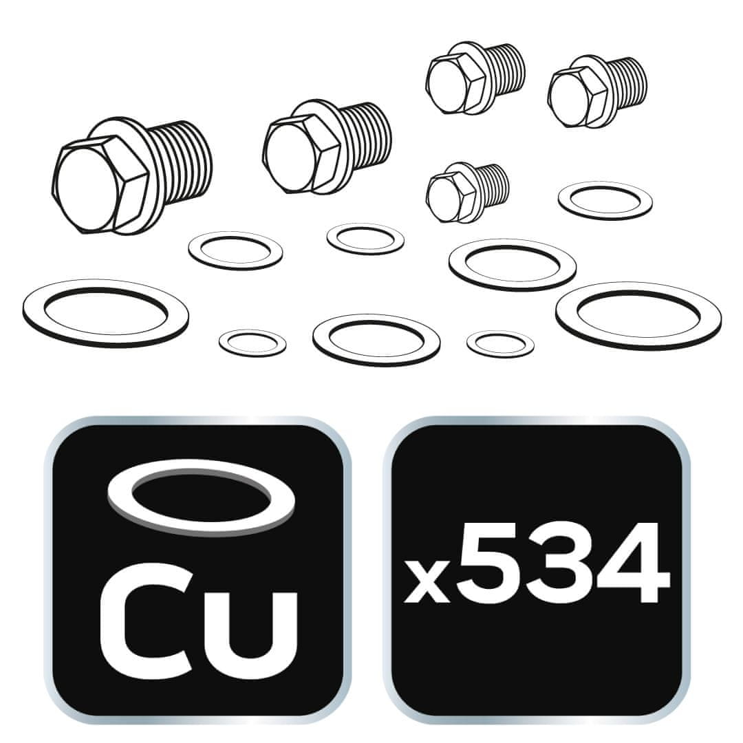 Ta komplet 534 bakrenih tesnilnih čepov je obvezen za vsako avtomobilsko ali vodovodno delavnico. Ti čepi v kombinaciji z bakrenimi podložkami tesnijo različne navojne povezave in preprečujejo puščanje tekočin in plina. Primerni so za uporabo v zavornih, hladilnih in gorivnih sistemih ter hidravličnih in pnevmatskih sistemih. Baker zagotavlja odlično tesnjenje in odpornost proti koroziji, kar zagotavlja trpežne in zanesljive povezave. Komplet vključuje čepe različnih velikosti, kar vam omogoča, da izberete pravega za vsako uporabo. Ta profesionalna rešitev je odlična za mehanike in vodovodarje, ki cenijo kakovost in natančnost.