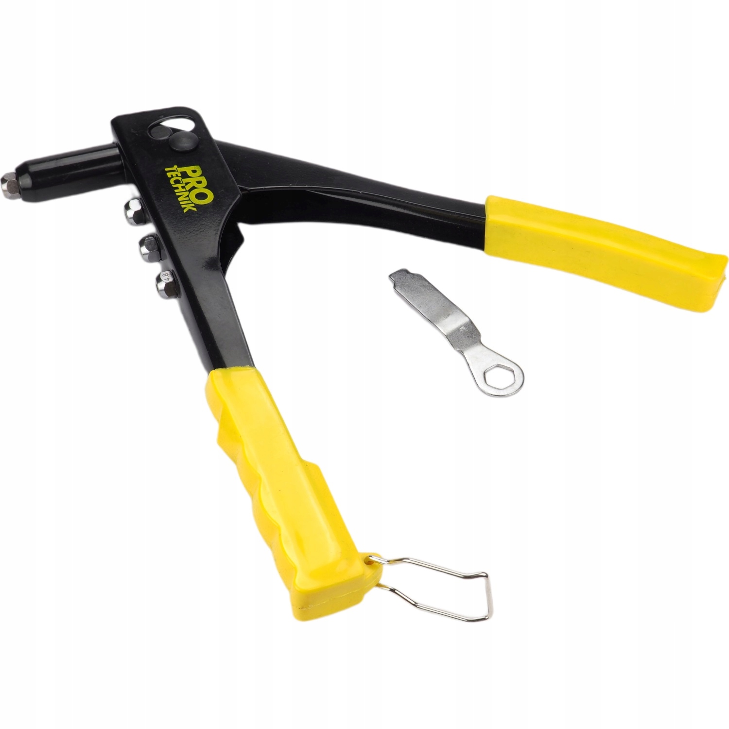 Ročaji so gumirani, da preprečijo zdrs med delom. Priložen je ključ za privijanje konic za kovičenje.