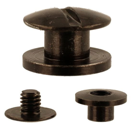 Vijačne zakovice Knjigoveški vijak 3,5 mm Črna 50 kos Vijačne zakovice so sestavljene iz dveh delov, okrasnega zatiča in vijaka. Za namestitev preprosto vstavite zakovico in jo preprosto privijte Črne vijačne zakovice – opis: premer glave: 10 mm, višina po vijačenju: 3,5 mm (med glavami), premer jedra: 5 mm, navoj vijaka: 4 mm, dolžina navoja: 4 – 5 mm, barva: črna, cena za 50 kosov Vijačne zakovice – uporaba Vijačne zakovice se uporabljajo za spajanje materialov z možnostjo večkratnega in priročnega pritrjevanja ing. Zaradi enostavne namestitve ne zahtevajo uporabe specializiranih orodij. Krojaški vijak tukaj ne bo potreben kot atraktiven okras v hlačnih pasovih ali celo kot okras za albume ali platnice, vendar je njihova namestitev drugačna. Sestavljeni so iz 2 elementov, okrasnega ženskega dela in vijaka, ki se vanj privije. Ta vrsta zakovice bo našla uporabo v številnih panogah in izdelkih. V omari poleg torbic. Fotografija, pasovi za fotoaparat. Oglaševanje, v reklamnih vrvicah. Torba, pritrjevanje ročajev na torbe. Druge uporabe zakovic, knjigoveških vijakov, vijakov za šablone, vijakov za pritrjevanje pasov Te vrste zakovice so idealne za montažo elementov, ki se lahko zlomijo ali pa so preprosto zamenljivi in zahvaljujoč takemu vijaku je zamenjava hitra in enostavna.