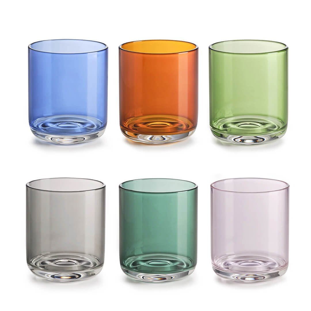 Set Elite vsebuje šest elegantnih kozarcev iz kakovostnega borosilikatnega stekla, ki slovi po vzdržljivosti in odpornosti na temperaturne spremembe. Kozarci so obarvani po celotni površini, medtem ko prozorno dno ustvarja zanimiv vizualni kontrast in poudari sodoben videz. S prostornino 330 ml so idealni za postrežbo vode, sokov, limonade ali drugih osvežilnih napitkov. V setu je mešanica kozarcev v različnih barvah, kar mizi doda igriv in hkrati eleganten videz. Debelejša stena kozarcev zagotavlja prijeten občutek v roki ter večjo trpežnost, zato so primerni tako za vsakdanjo uporabo kot tudi za bolj svečane priložnosti. Primerni so za uporabo v mikrovalovni pečici in za pomivanje v pomivalnem stroju.