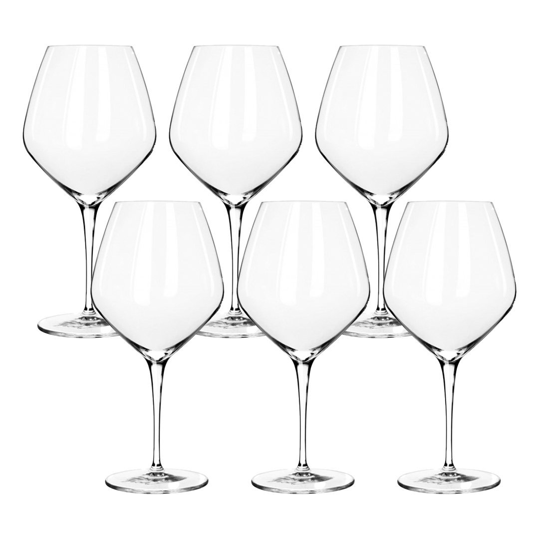 6-delni set elegantnih kelihov ATELIER BAROLO blagovne znamke Luigi Bormioli je primeren predvsem za uživanje rdečih sort vin (npr. barolo, shiraz). Prefinjeni kelihi so izdelani iz visokotehnološkega pihanega stekla SON.hyx, ki je odporno na lomljenje in primerno za pranje v pomivalnem stroju. Ravno to steklo daje kozarcem posebno čistost, popolno prozornost in bleščeč sijaj.