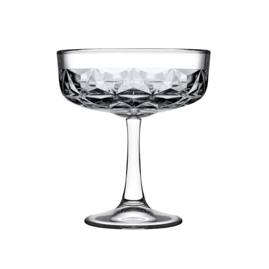 Kozarec za penino iz linije Estrella, bo zagotovo osvežil vašo mizo. Značilna retro, lomljena oblika kozarca zelo lepo poudarja njegovo vsebino, zaradi tega bo izgledala vaša pijača še bolje. Kozarec s prostornino 235 ml je primeren za serviranje penine, koktejlov in ostalih alkoholnih pijač, primeren pa je vsekakor tudi za brezalkoholne pijače.