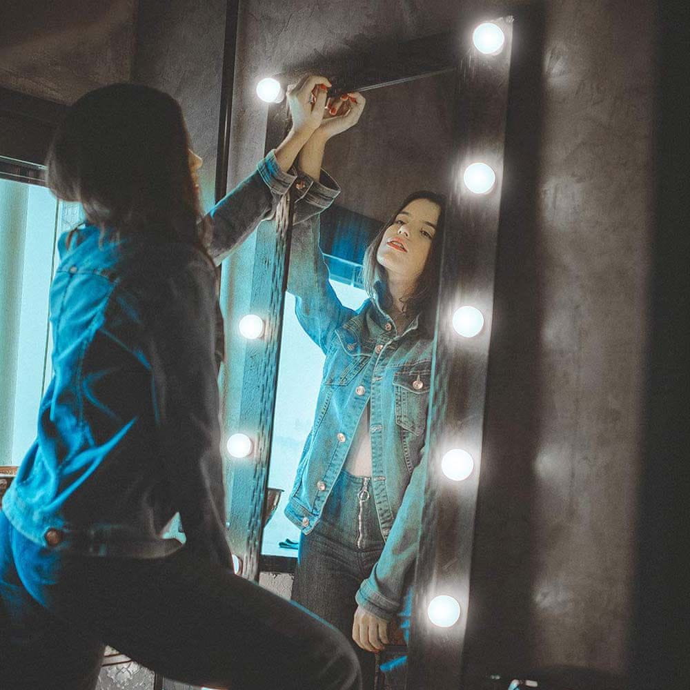 Žarnica z 10 LED Hollywood Style Vanity Mirror je zelo mehka, naravna in svetla, ne da bi oddajala dodatno toploto. Dnevno svetlobo priporočajo profesionalni vizažisti. Lahko se enostavno namesti v nekaj minutah. Skrij žice. Ni treba vrtati ali vrtati lukenj v steno. Uporabite močno samolepilno lepljivo blazinico, ki ne bo zlahka padla. Najboljša naložba v lepoto. Inteligentno stikalo za zatemnitev na dotik za vklop/izklop pomnilnika vam omogoča, da kadar koli po potrebi prilagodite svetlost. Dolžino kompleta luči lahko poljubno prilagodite svojim potrebam, zaradi česar je komplet ličil lep in urejen. Nepotrebne žarnice lahko odrežete. Kaj še iščete? To je najboljša izbira! VARNA UPORABA – Plug and play s priloženim varnim 12 V UL napajalnikom. Večnamensko kozmetično luč lahko uporabite na toaletnih mizicah, kozmetičnih ogledalih ali kopalniških stenskih ogledalih za ličenje, osvetlitev, dekoracijo in fotografiranje.