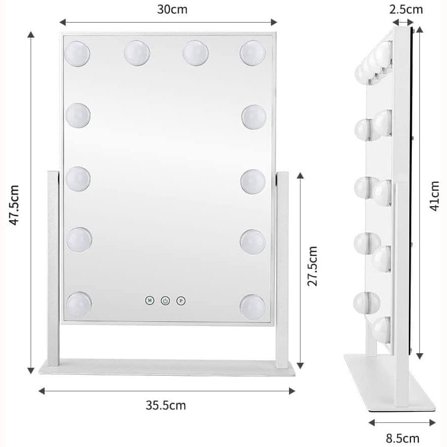 Z ogledalom za ličenje Bright Beauty Vanity Nina si zagotovite popoln videz ličil. To ogledalo, ki ga je navdihnil Hollywood, ima tri različne načine osvetlitve, s katerimi lahko osvetlitev prilagodite svojim potrebam. S funkcijo zatemnitve lahko preprosto prilagodite svetlost in si zagotovite popolno osvetlitev ne glede na čas dneva. Elegantna in sodobna oblika omogoča, da se ogledalo prilega vsaki sobi in postane eleganten del vaše notranjosti. Odlično za profesionalne umetnike ličenja in lepotne navdušence.