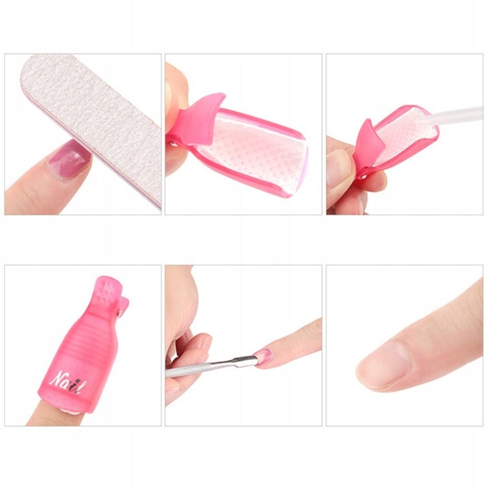 Naše hibridne sponke za odstranjevanje imajo edinstveno ergonomsko obliko , ki se popolnoma prilega vašim nohtom, ne da bi se med zdravljenjem premaknila, in so odporne na aceton, zato jih lahko uporabljate znova in znova. To je hitra, ekonomična in varna rešitev, ki vam bo omogočila, da za svoje nohte poskrbite v nekaj minutah!