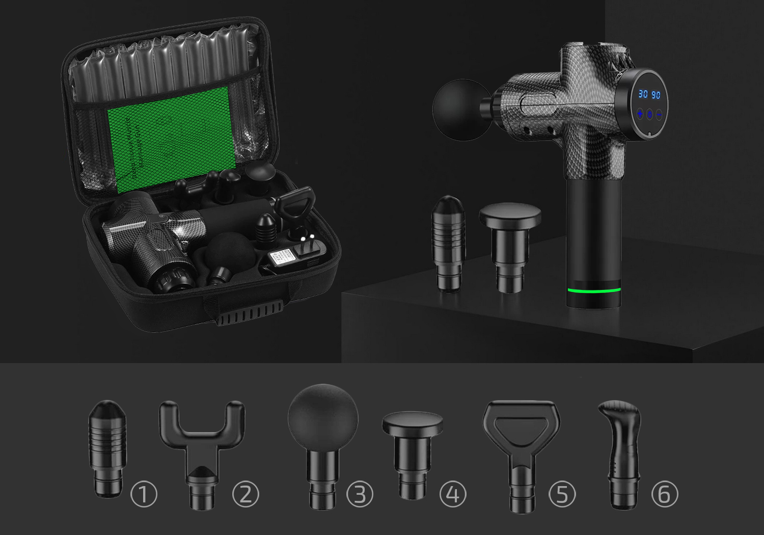 ➡️ Priročna torbica vam bo omogočila priročno prenašanje kompleta, ne da bi vas skrbelo, da bi poškodovali masažer ali izgubili katerega koli od elementov kompleta.