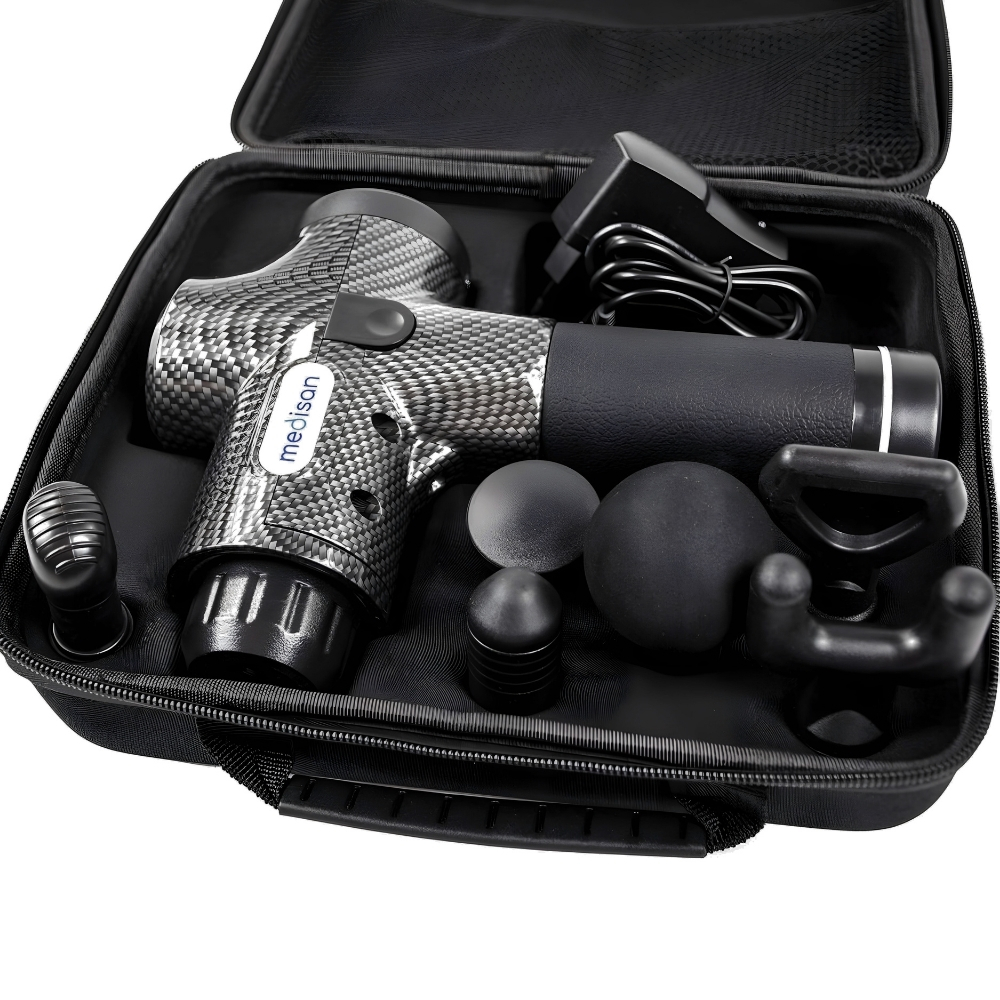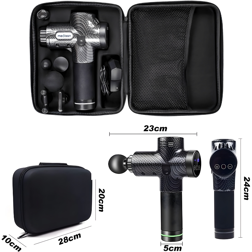 ➡️ Masažna pištola Medisan je naprava, ki omogoča izvajanje masaže z udarnimi gibi. Gre za intenzivno masažo, ki bo izboljšala prekrvavitev, preprečila ali lajšala bolečine v mišicah in pospešila okrevanje . Masažna pištola vam zahvaljujoč hitremu in ritmičnemu udarjanju v mišice omogoča sprostitev po napornem dnevu!