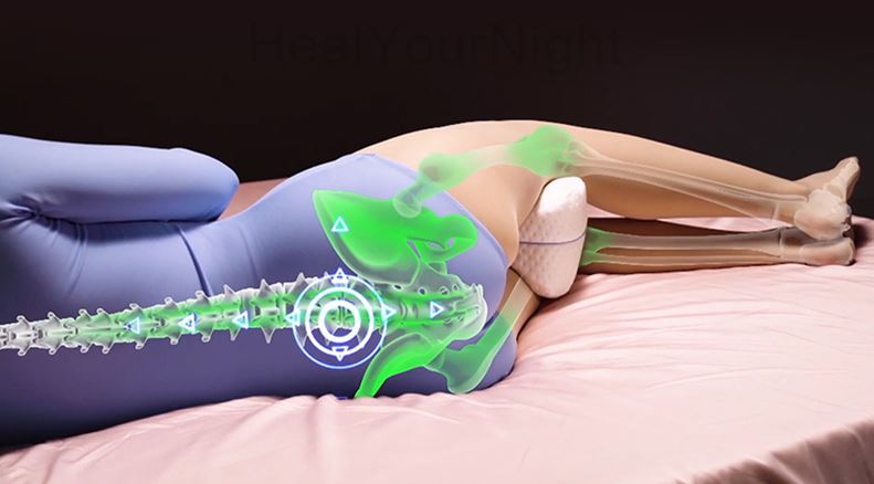 Ko spite na boku, je vaša drža izpostavljena popačenjem. To je najpogosteje posledica pomanjkanja anatomske lege nog in bokov. Klinasta blazina med nogami rešuje to težavo.