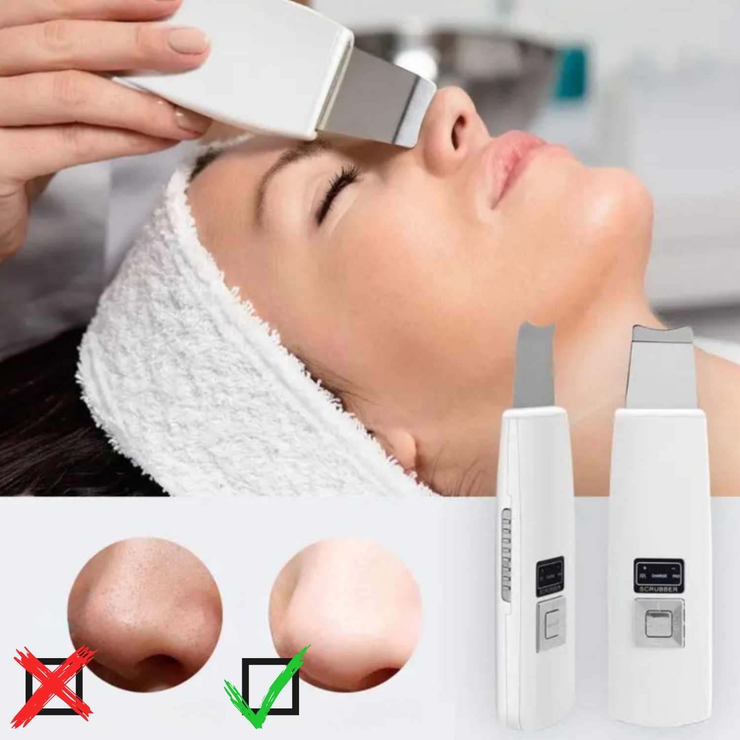⚜️ Zahvaljujoč napredni ultrazvočni tehnologiji piling nežno odstrani odmrlo kožo, globinsko očisti pore in podpira regeneracijo kože – brez potrebe po obiskih kozmetičnega salona!