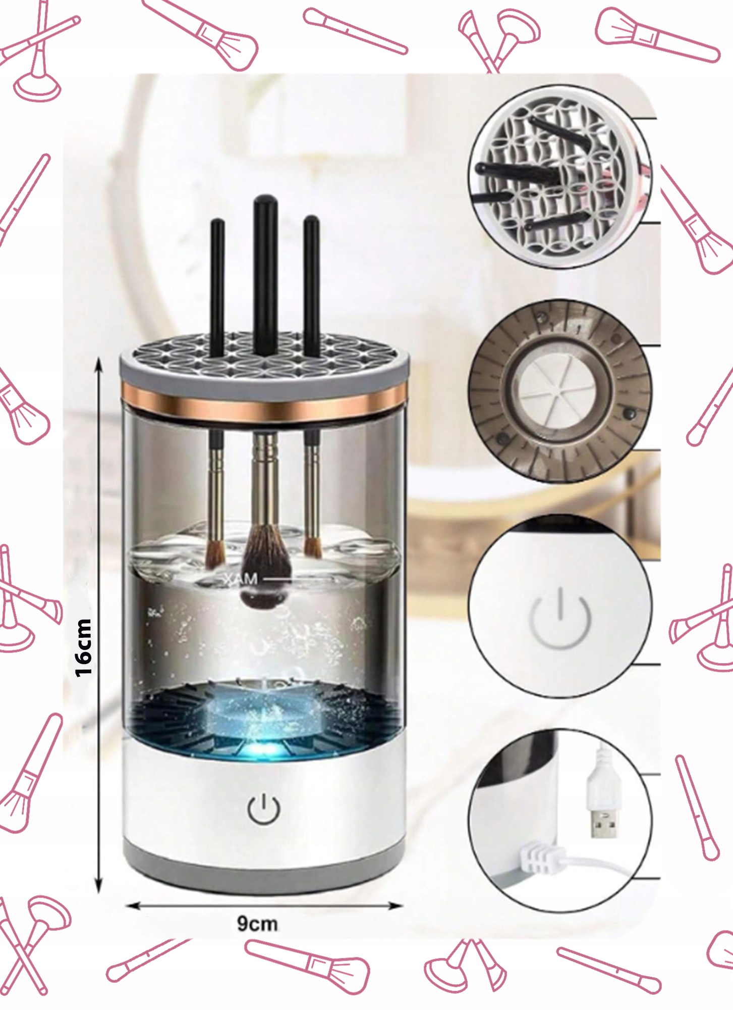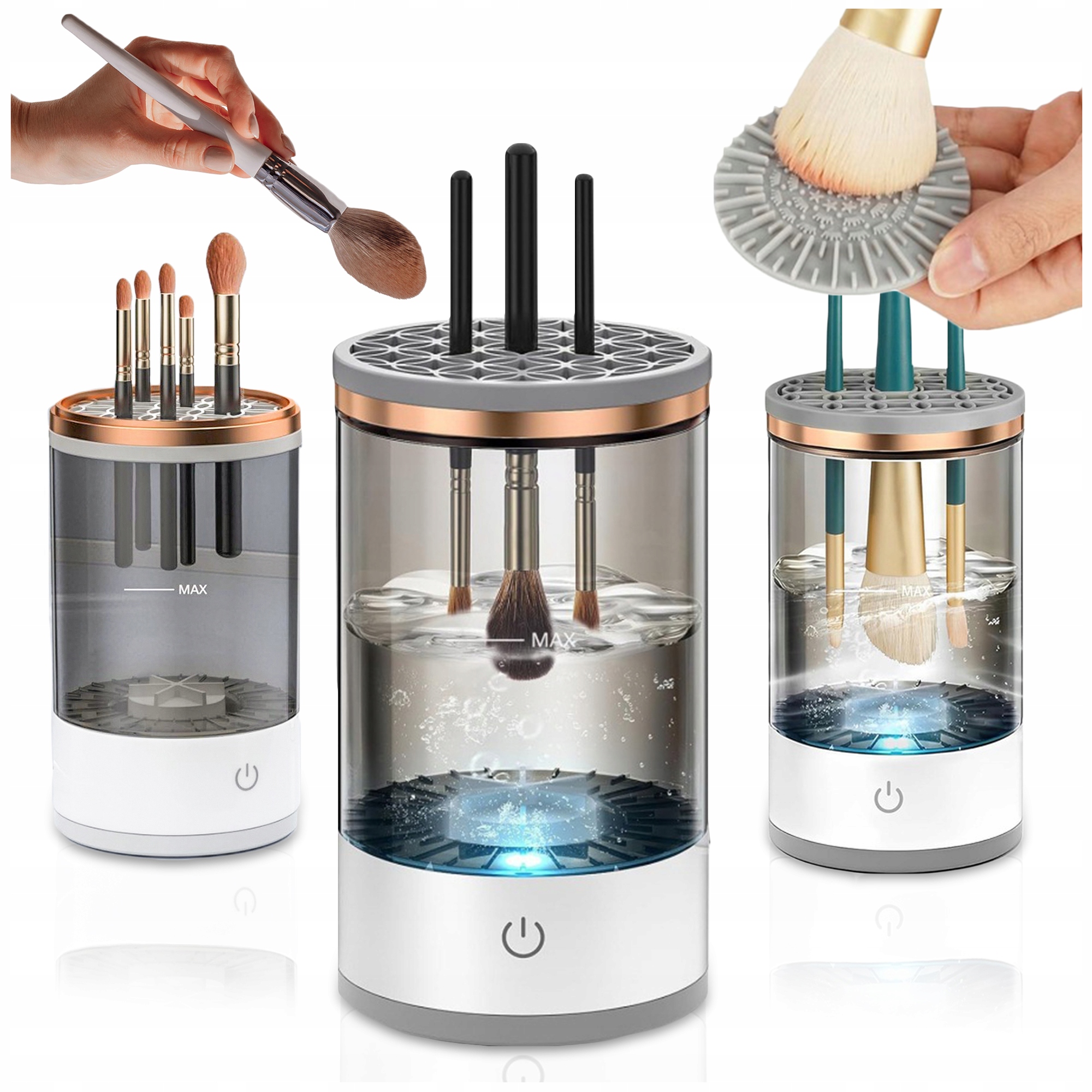 Ustreza različnim oblikam in velikostim čopičev, ne glede na njihov namen – ne glede na to, ali so čopiči za puder, podlago, senčila ali črtala za oči.? Samo dodajte malo vode in detergenta, čopič nežno podrgnite ob površino čopiča in ostanki ličil bodo v hipu izginili! ⏳ Popoln za dom in potovanjaAli vi