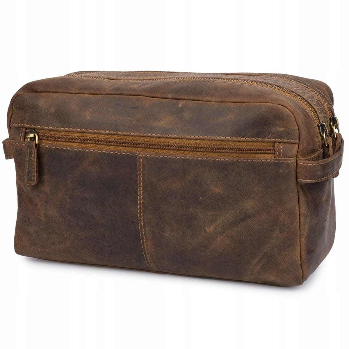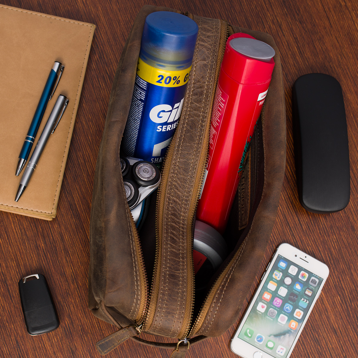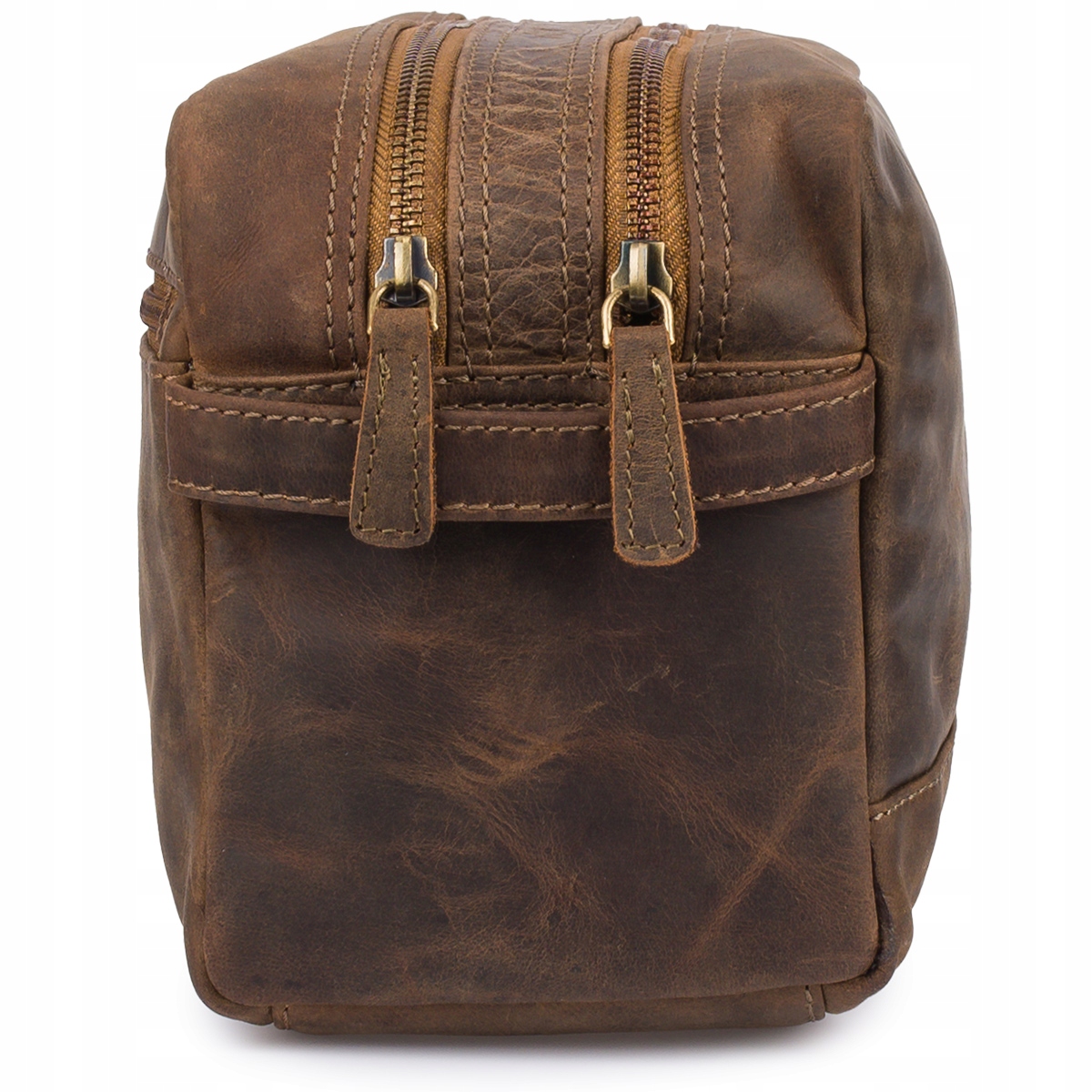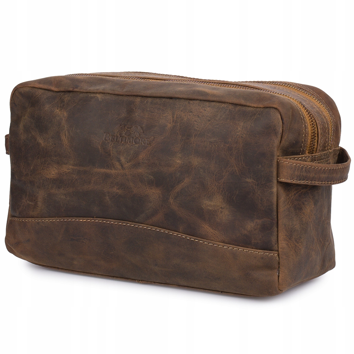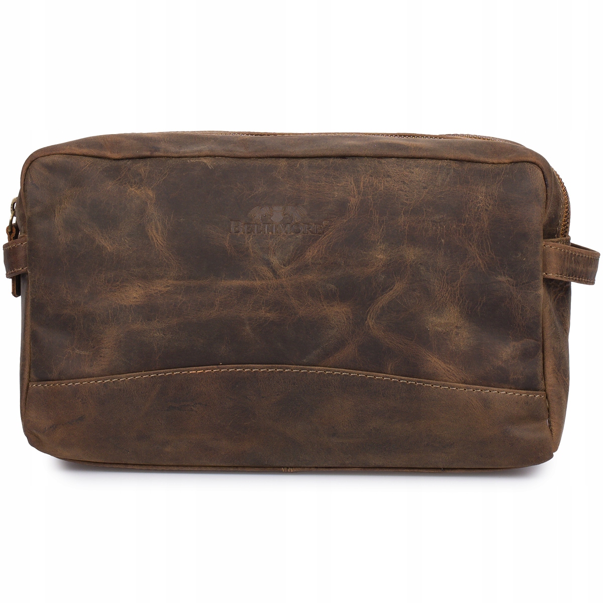 shumee Usnjena unisex kozmetična torbica Beltimore, rjava, dvoprostorna potovalka